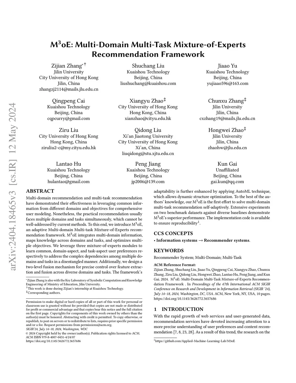 M3oE: Multi-Domain Multi-Task Mixture-of Experts Recommendation