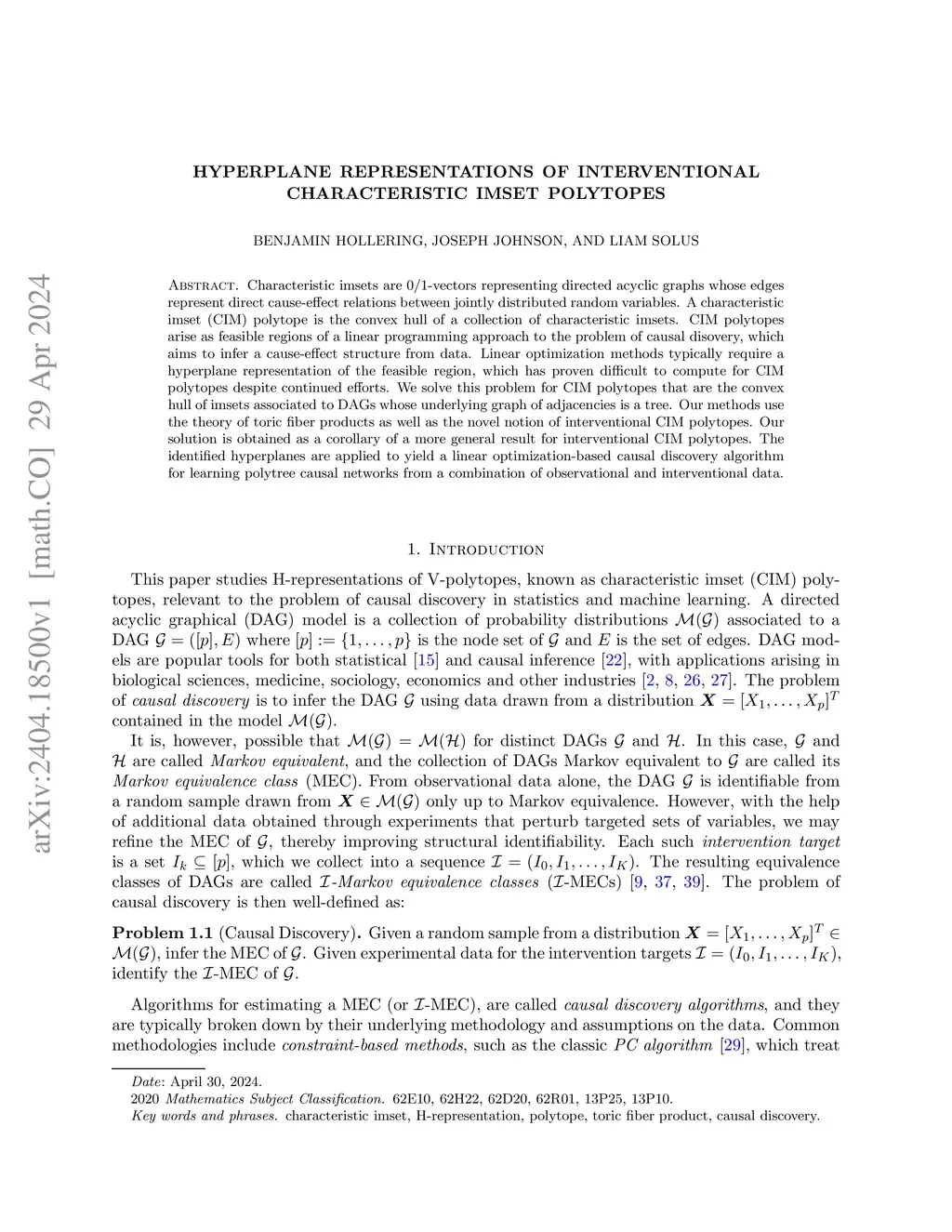 Characteristic imsets are 0/1-vectors representing directed acyclic graphs whose edges represent direct cause-effect relations between jointly distributed random variables. A characteristic imset (CIM) polytope is the convex hull of a collection of characteristic imsets. CIM polytopes arise as feasible regions of a linear programming approach to the problem of causal disovery, which aims to infer a cause-effect structure from data. Linear optimization methods typically require a hyperplane representation of the feasible region, which has proven difficult to compute for CIM polytopes despite continued efforts. We solve this problem for CIM polytopes that are the convex hull of imsets associated to DAGs whose underlying graph of adjacencies is a tree. Our methods use the theory of toric fiber products as well as the novel notion of interventional CIM polytopes. Our solution is obtained as a corollary of a more general result for interventional CIM polytopes. The identified hyperplanes are applied to yield a linear optimization-based causal discovery algorithm for learning polytree causal networks from a combination of observational and interventional data.