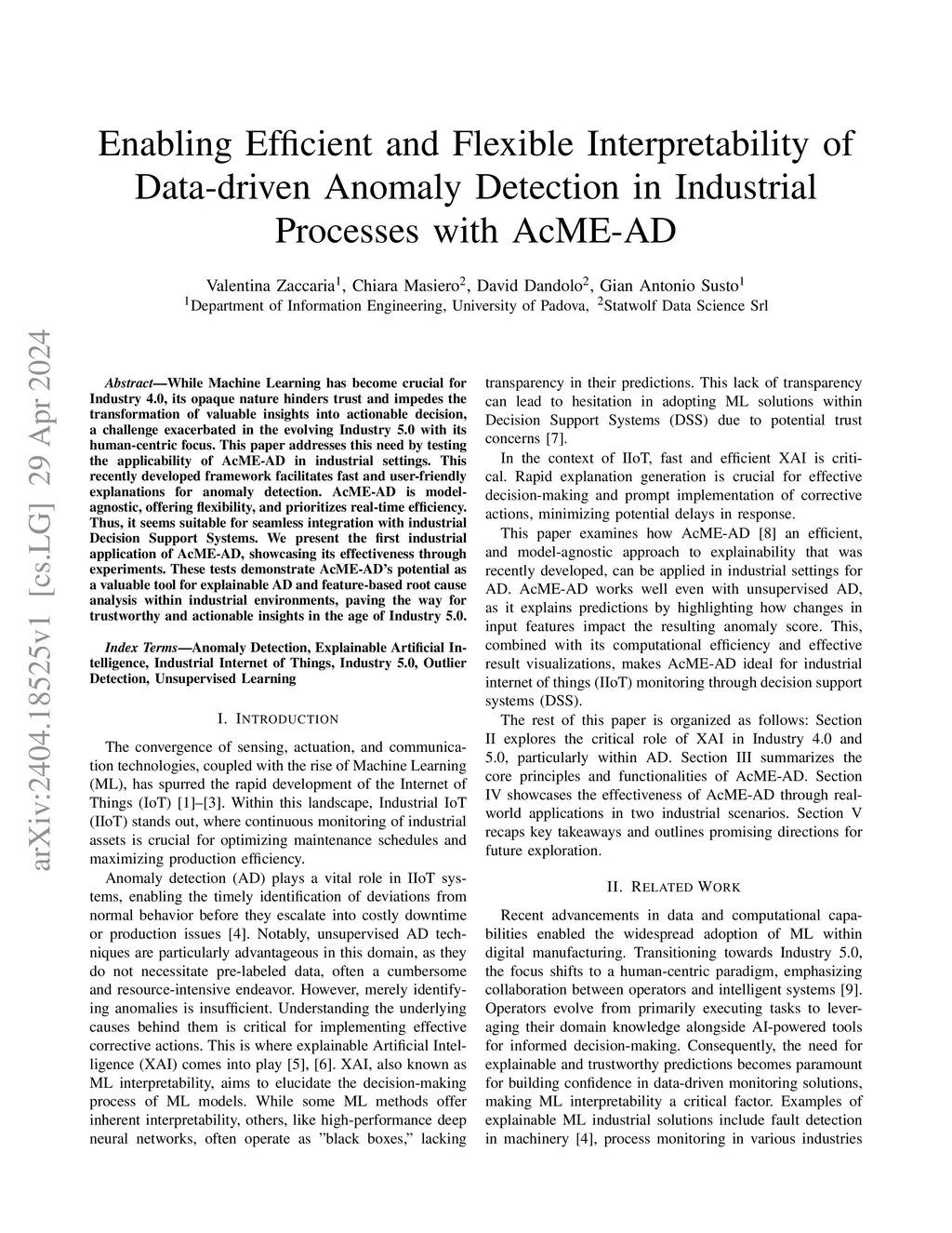 While Machine Learning has become crucial for Industry 4.0, its opaque nature hinders trust and impedes the transformation of valuable insights into actionable decision, a challenge exacerbated in the evolving Industry 5.0 with its human-centric focus. This paper addresses this need by testing the applicability of AcME-AD in industrial settings. This recently developed framework facilitates fast and user-friendly explanations for anomaly detection. AcME-AD is model-agnostic, offering flexibility, and prioritizes real-time efficiency. Thus, it seems suitable for seamless integration with industrial Decision Support Systems. We present the first industrial application of AcME-AD, showcasing its effectiveness through experiments. These tests demonstrate AcME-AD's potential as a valuable tool for explainable AD and feature-based root cause analysis within industrial environments, paving the way for trustworthy and actionable insights in the age of Industry 5.0.