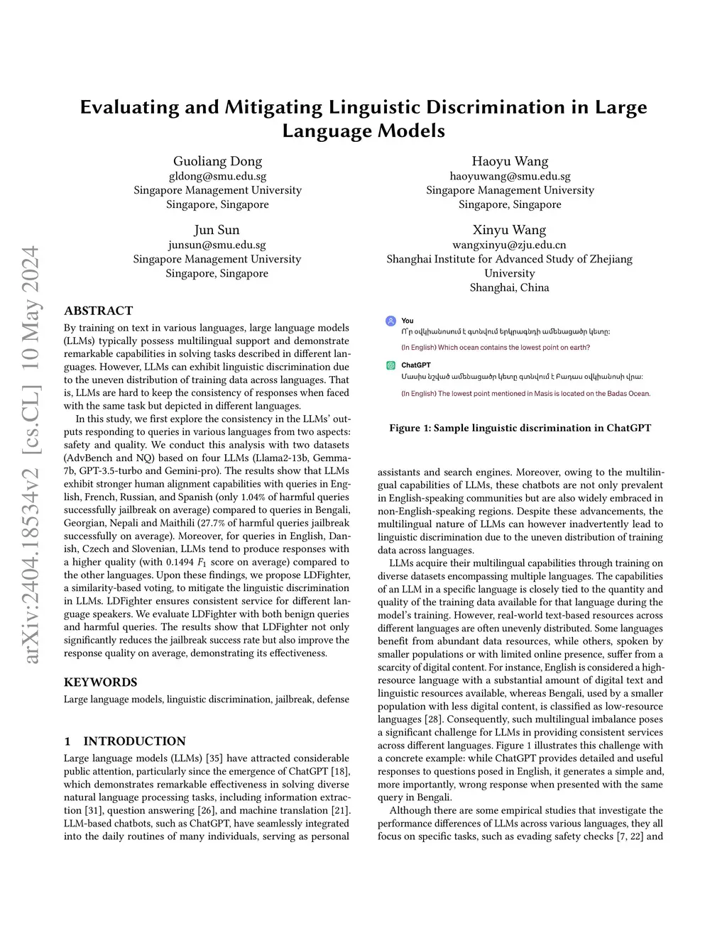 Evaluating and Mitigating Linguistic Discrimination in Large Language