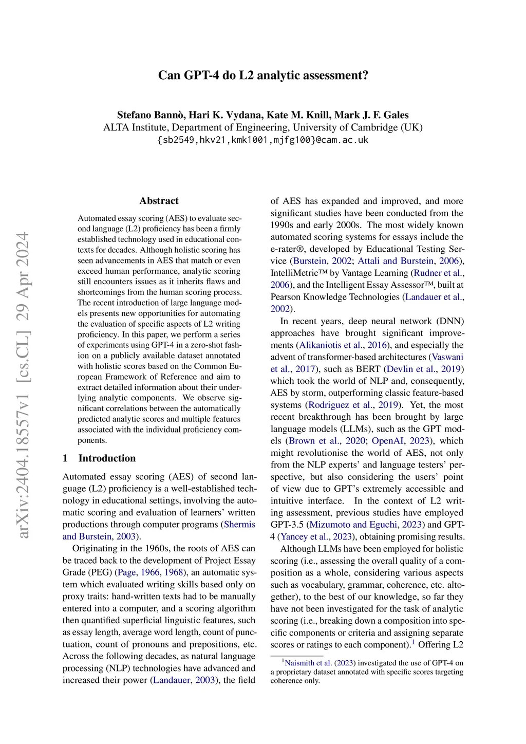 Can GPT-4 do L2 analytic assessment?