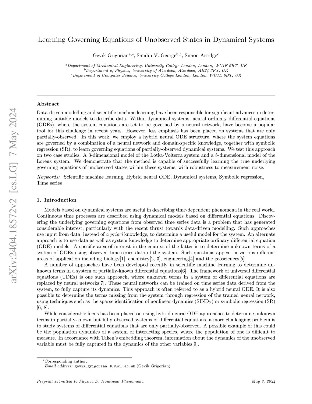 Learning Governing Equations of Unobserved States in Dynamical Systems
