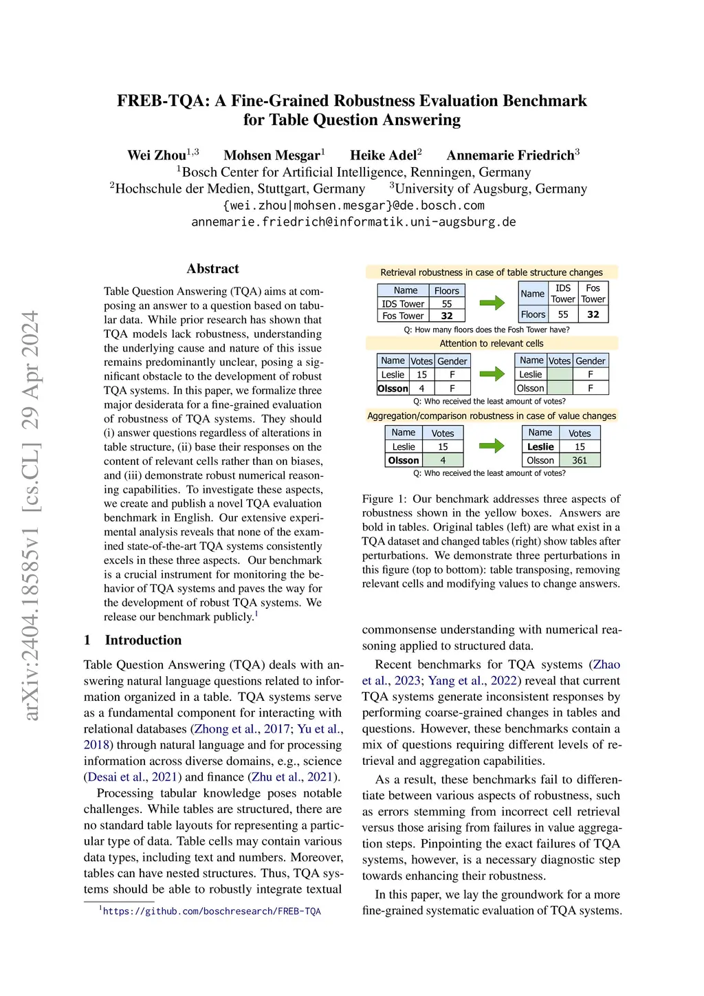 FREB-TQA: A Fine-Grained Robustness Evaluation Benchmark for Table