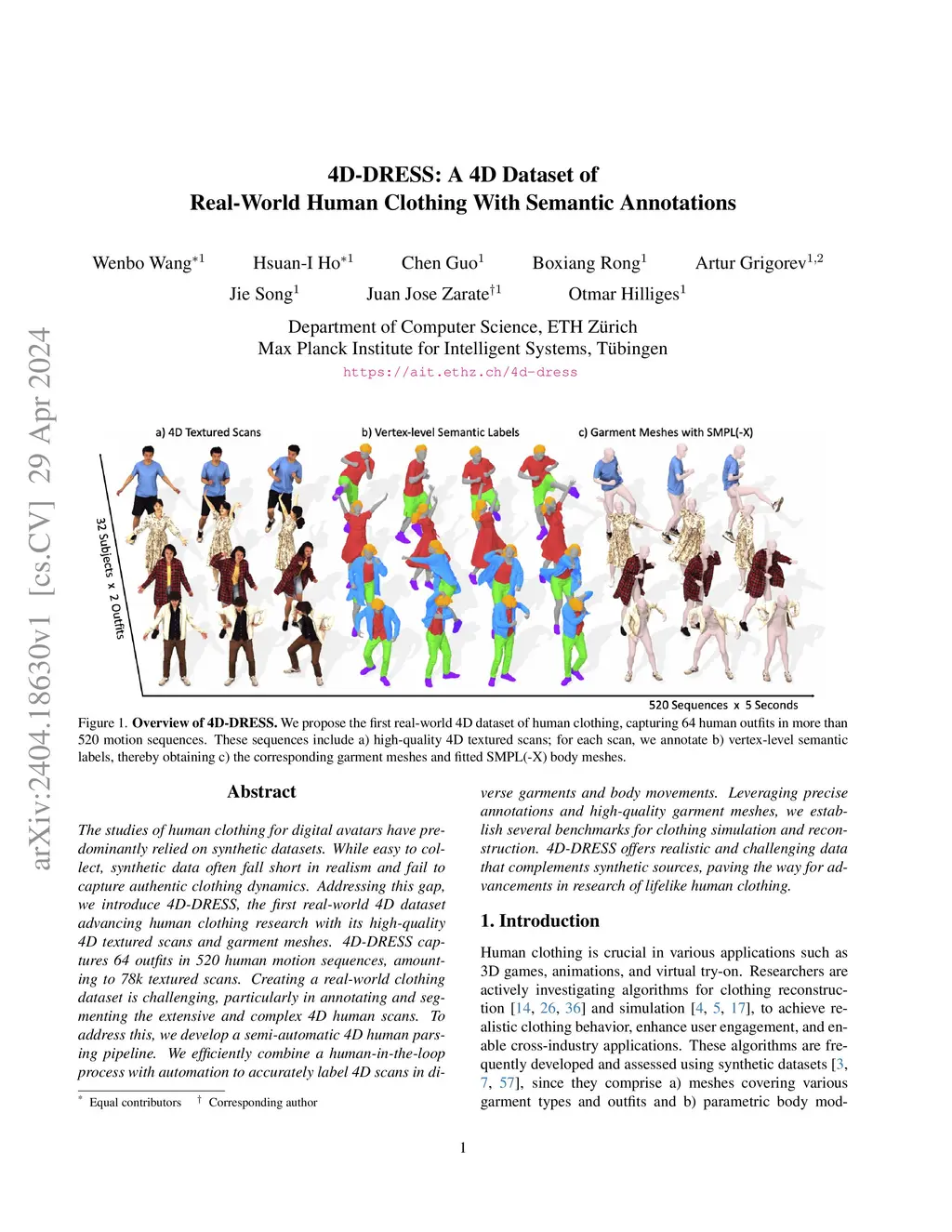 4D-DRESS: A 4D Dataset of Real-world Human Clothing with Semantic
