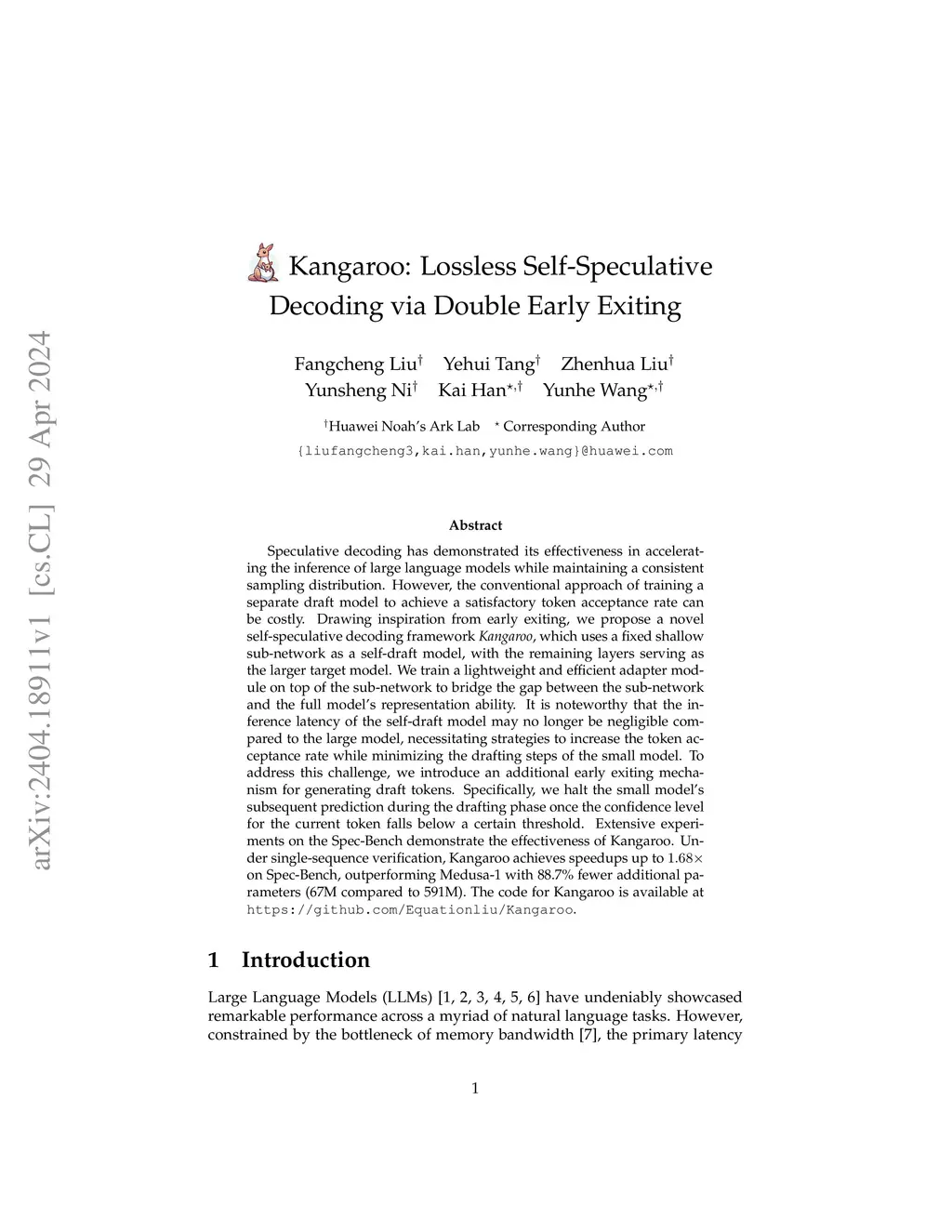 Kangaroo: Lossless Self-Speculative Decoding via Double Early Exiting