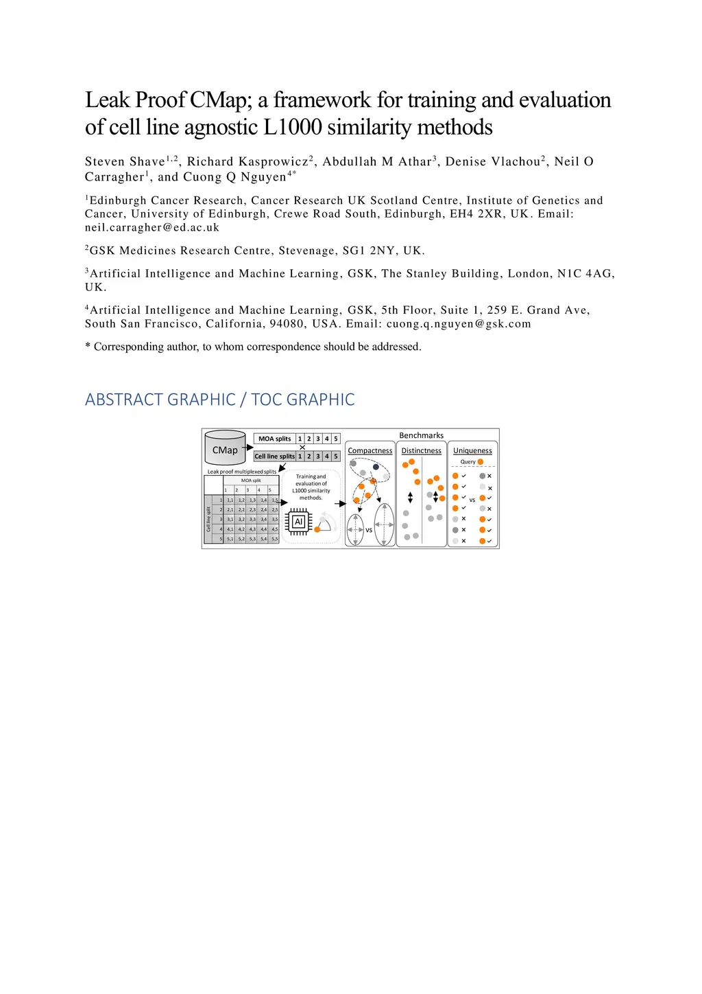 Leak Proof CMap; a framework for training and evaluation of cell line