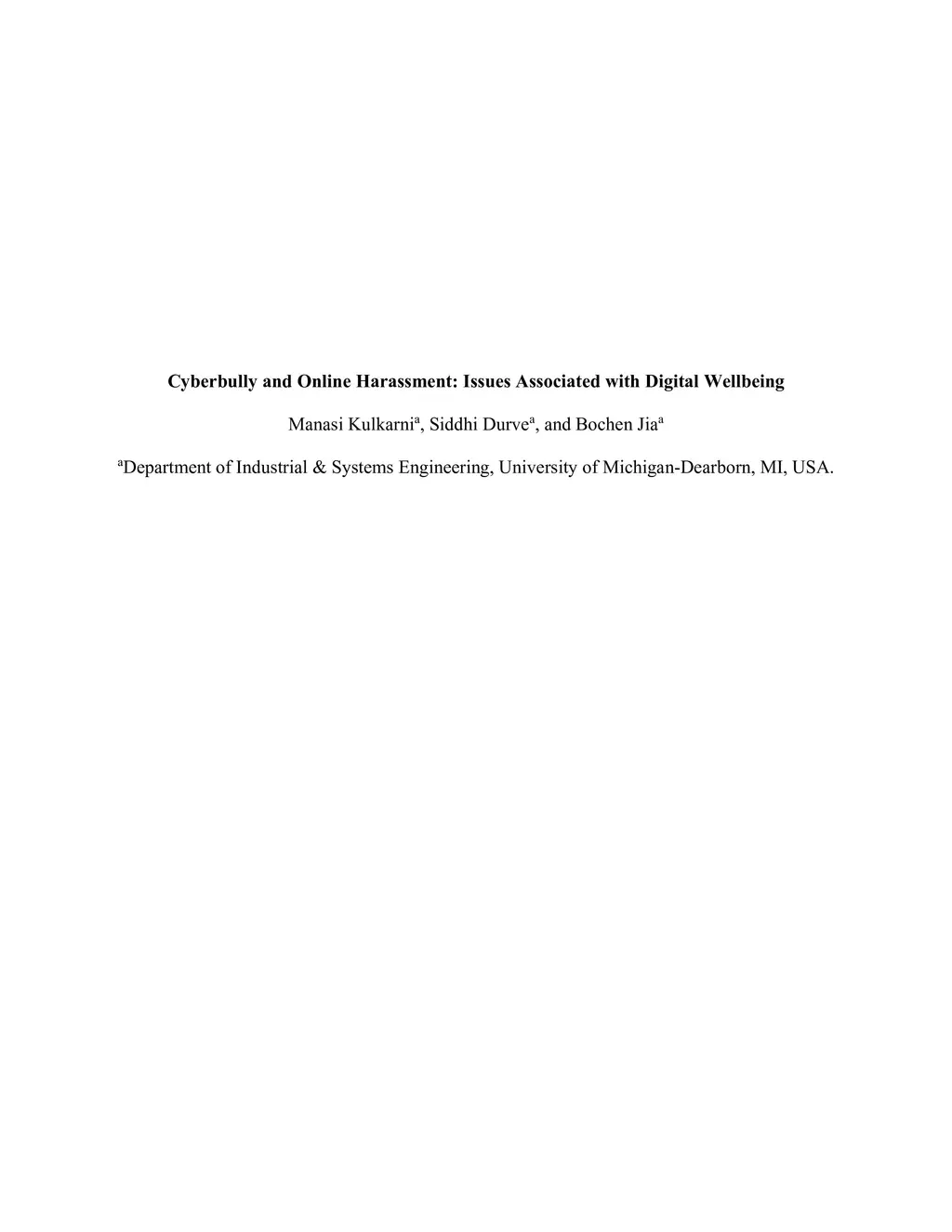 Cyberbully and Online Harassment: Issues Associated with Digital