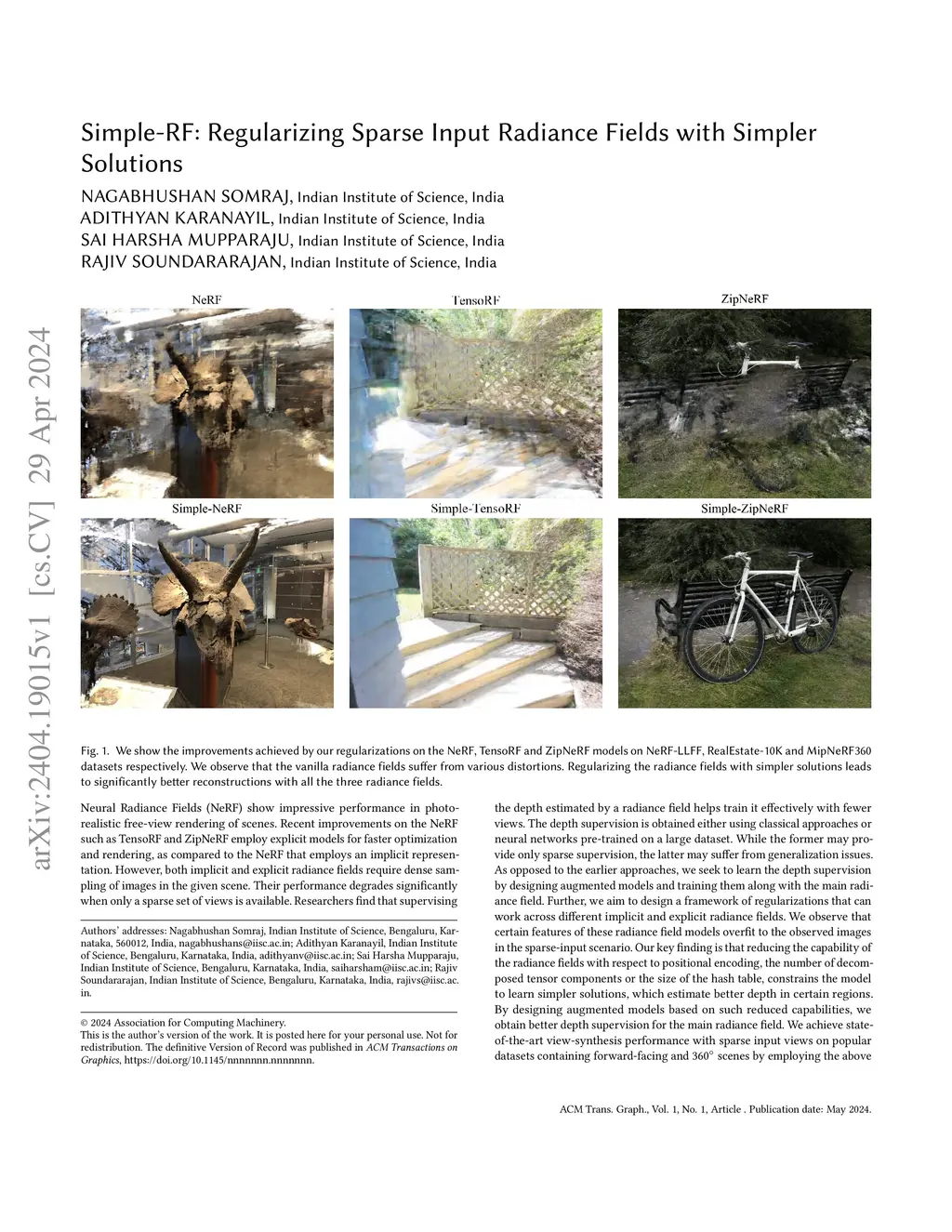 Simple-RF: Regularizing Sparse Input Radiance Fields with Simpler Solutions