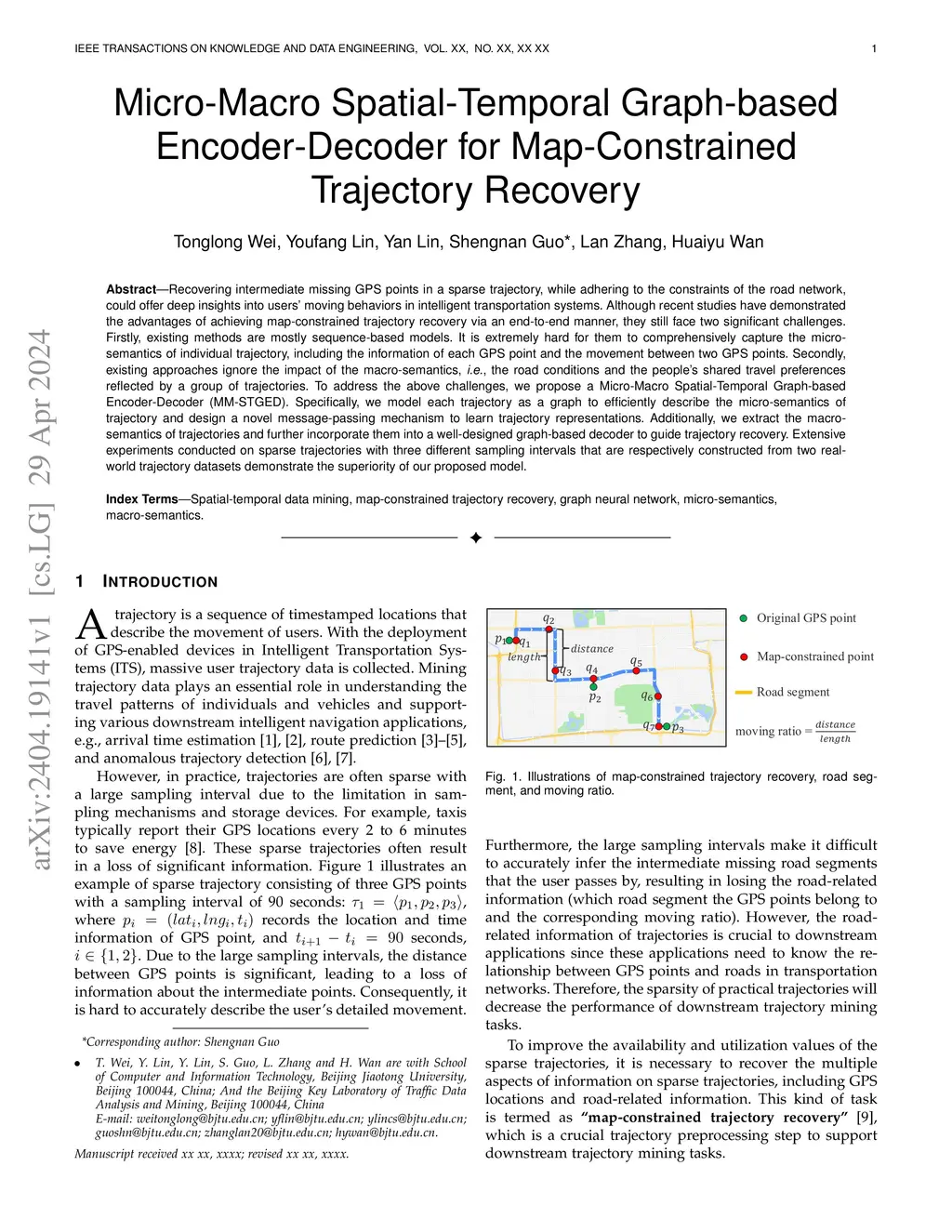 Recovering intermediate missing GPS points in a sparse trajectory, while adhering to the constraints of the road network, could offer deep insights into users' moving behaviors in intelligent transportation systems. Although recent studies have demonstrated the advantages of achieving map-constrained trajectory recovery via an end-to-end manner, they still face two significant challenges. Firstly, existing methods are mostly sequence-based models. It is extremely hard for them to comprehensively capture the micro-semantics of individual trajectory, including the information of each GPS point and the movement between two GPS points. Secondly, existing approaches ignore the impact of the macro-semantics, i.e., the road conditions and the people's shared travel preferences reflected by a group of trajectories. To address the above challenges, we propose a Micro-Macro Spatial-Temporal Graph-based Encoder-Decoder (MM-STGED). Specifically, we model each trajectory as a graph to efficiently describe the micro-semantics of trajectory and design a novel message-passing mechanism to learn trajectory representations. Additionally, we extract the macro-semantics of trajectories and further incorporate them into a well-designed graph-based decoder to guide trajectory recovery. Extensive experiments conducted on sparse trajectories with three different sampling intervals that are respectively constructed from two real-world trajectory datasets demonstrate the superiority of our proposed model.