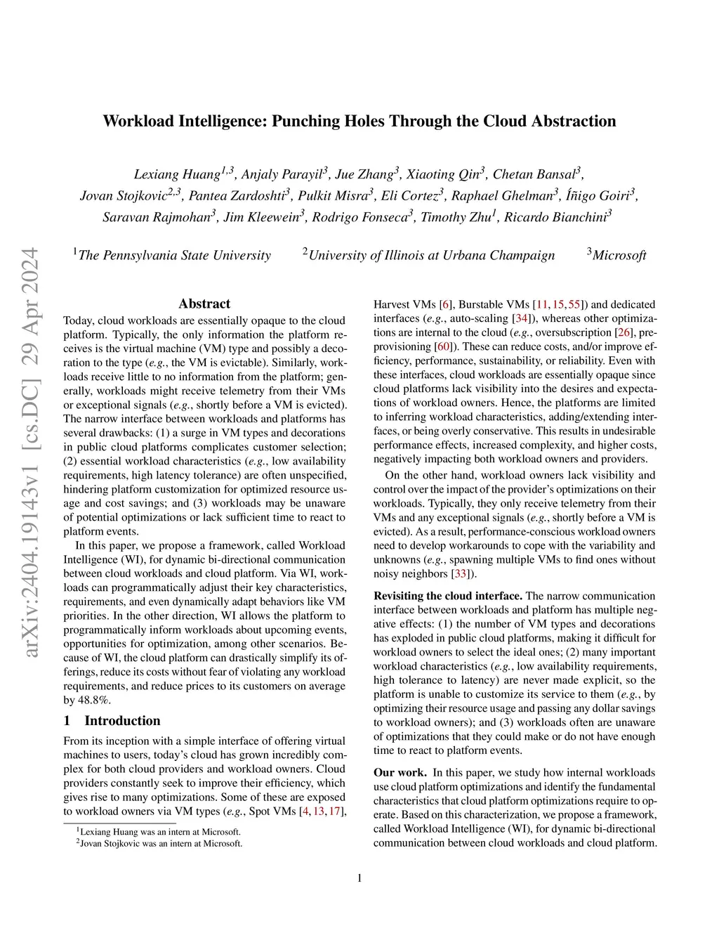 Workload Intelligence: Punching Holes Through the Cloud Abstraction