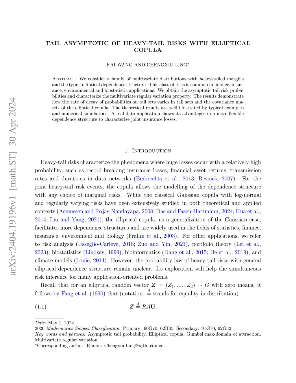 Tail Asymptotic of Heavy-Tail Risks with Elliptical Copula
