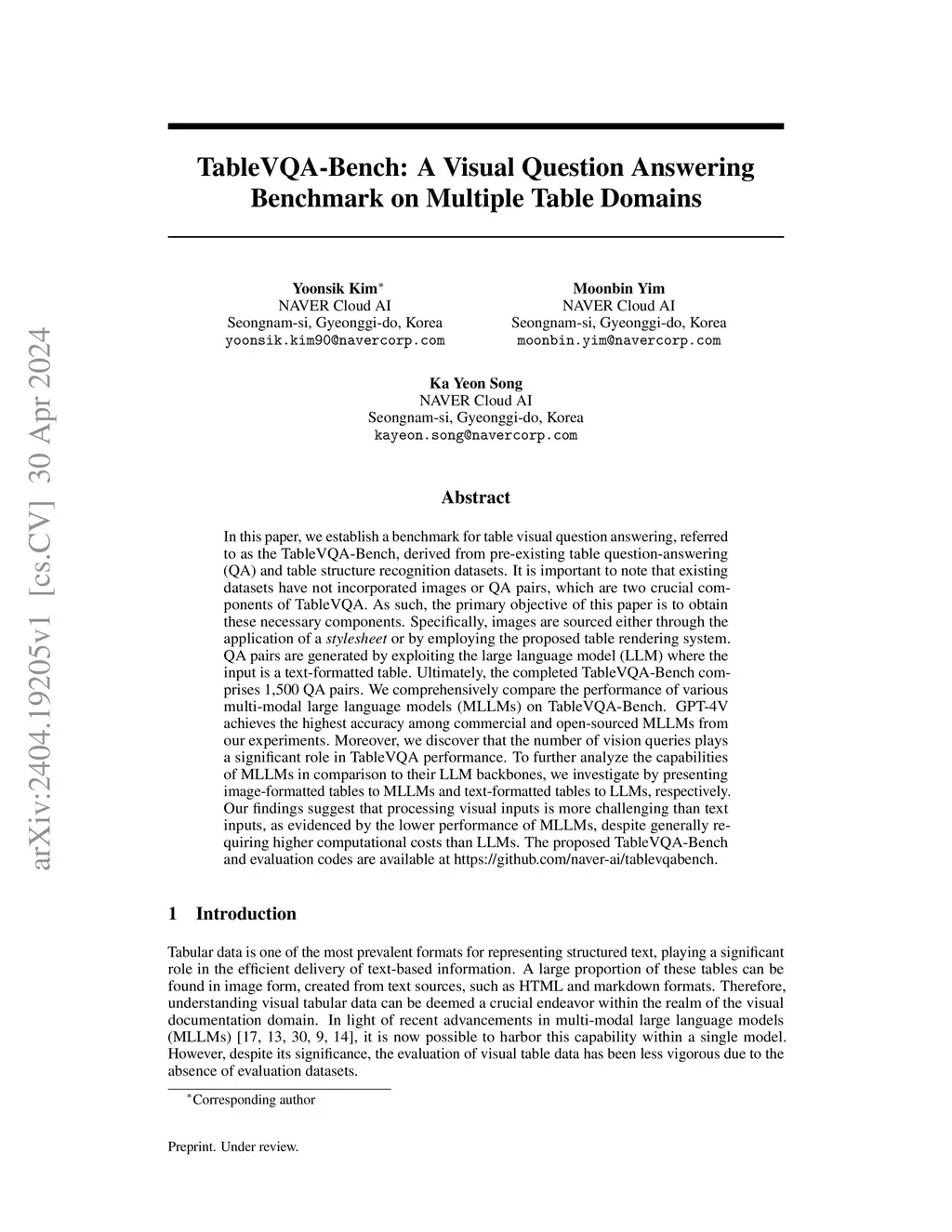TableVQA-Bench: A Visual Question Answering Benchmark on Multiple Table