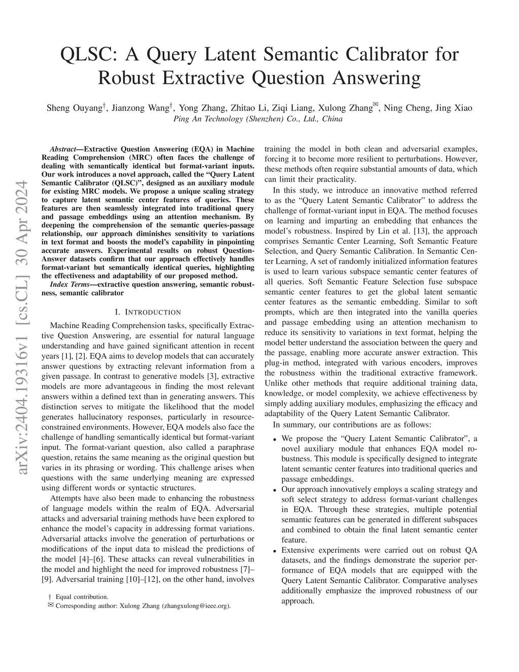 QLSC: A Query Latent Semantic Calibrator for Robust Extractive Question