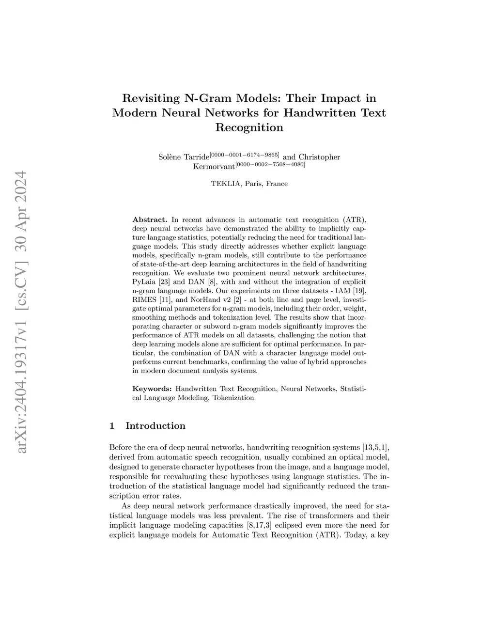 In recent advances in automatic text recognition (ATR), deep neural networks have demonstrated the ability to implicitly capture language statistics, potentially reducing the need for traditional language models. This study directly addresses whether explicit language models, specifically n-gram models, still contribute to the performance of state-of-the-art deep learning architectures in the field of handwriting recognition. We evaluate two prominent neural network architectures, PyLaia and DAN, with and without the integration of explicit n-gram language models. Our experiments on three datasets - IAM, RIMES, and NorHand v2 - at both line and page level, investigate optimal parameters for n-gram models, including their order, weight, smoothing methods and tokenization level. The results show that incorporating character or subword n-gram models significantly improves the performance of ATR models on all datasets, challenging the notion that deep learning models alone are sufficient for optimal performance. In particular, the combination of DAN with a character language model outperforms current benchmarks, confirming the value of hybrid approaches in modern document analysis systems.
