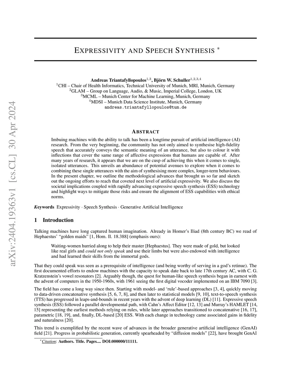 Imbuing machines with the ability to talk has been a longtime pursuit of artificial intelligence (AI) research. From the very beginning, the community has not only aimed to synthesise high-fidelity speech that accurately conveys the semantic meaning of an utterance, but also to colour it with inflections that cover the same range of affective expressions that humans are capable of. After many years of research, it appears that we are on the cusp of achieving this when it comes to single, isolated utterances. This unveils an abundance of potential avenues to explore when it comes to combining these single utterances with the aim of synthesising more complex, longer-term behaviours. In the present chapter, we outline the methodological advances that brought us so far and sketch out the ongoing efforts to reach that coveted next level of artificial expressivity. We also discuss the societal implications coupled with rapidly advancing expressive speech synthesis (ESS) technology and highlight ways to mitigate those risks and ensure the alignment of ESS capabilities with ethical norms.