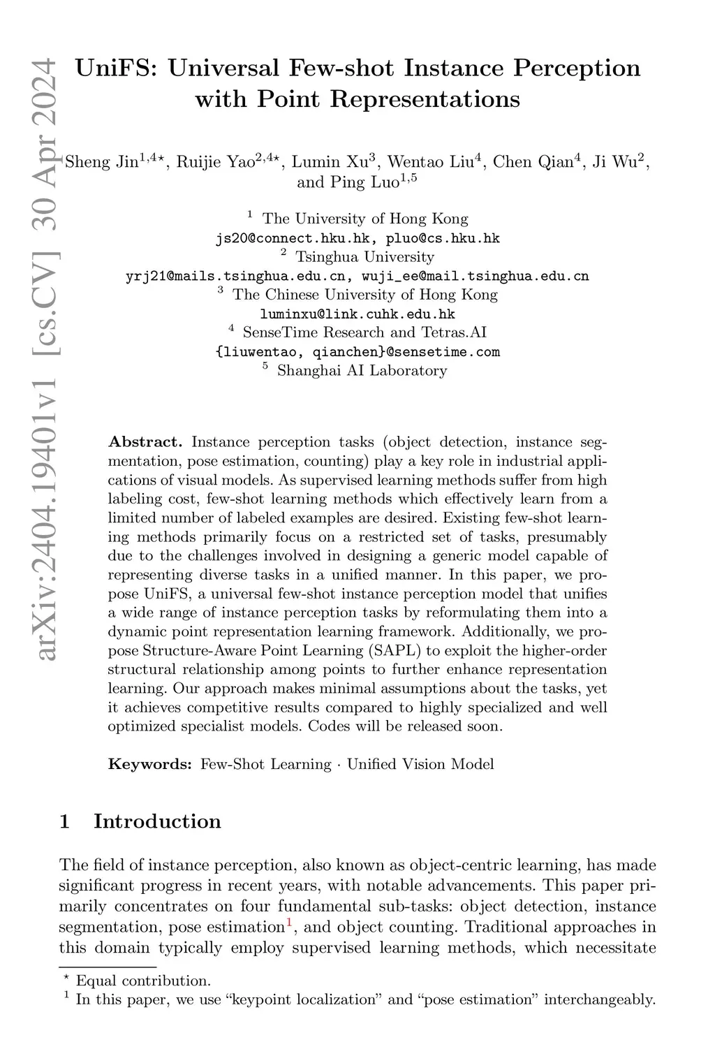 UniFS: Universal Few-shot Instance Perception with Point Representations
