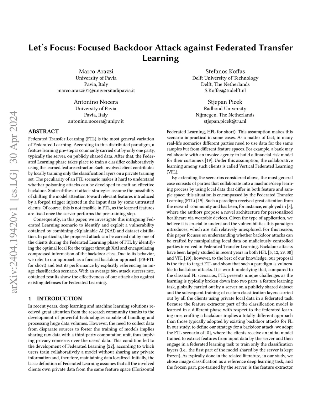 Let's Focus: Focused Backdoor Attack against Federated Transfer Learning