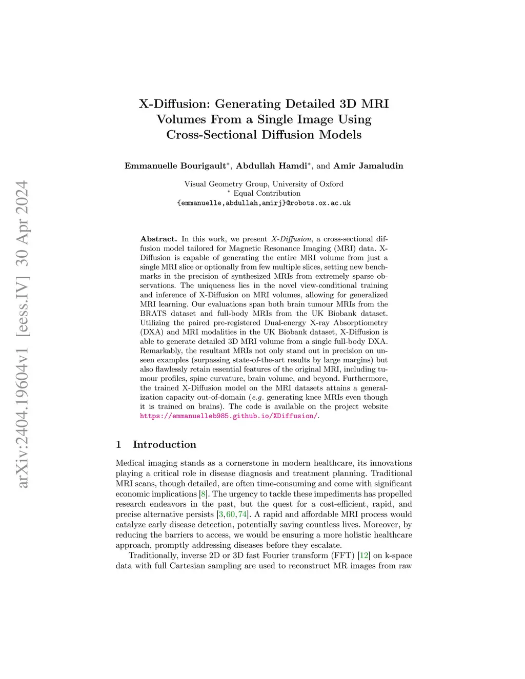 X-Diffusion: Generating Detailed 3D MRI Volumes From a Single Image Using Cross-Sectional Diffusion Models