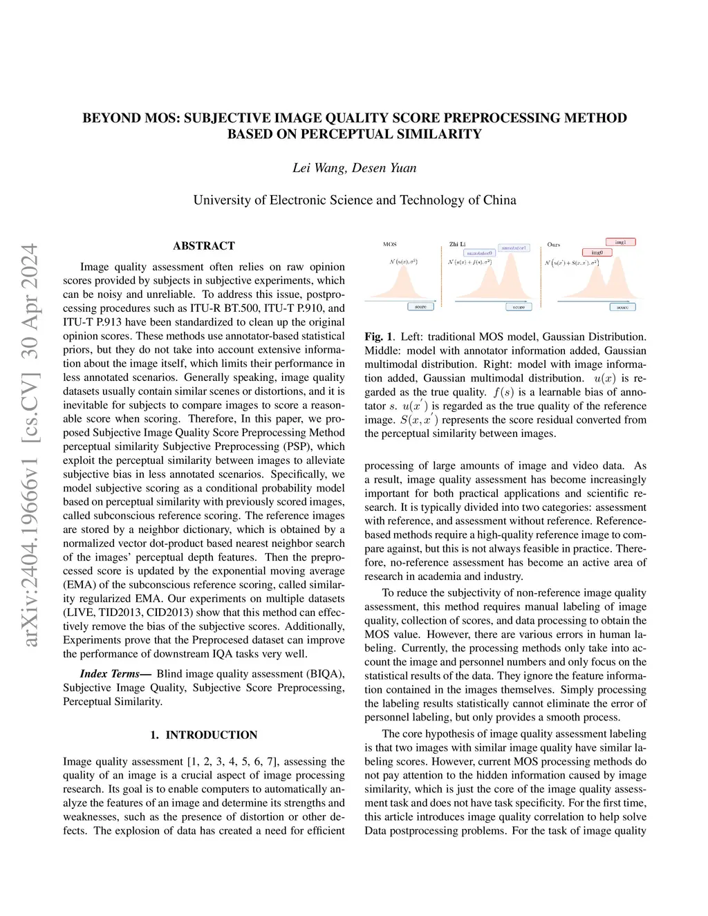 Beyond MOS: Subjective Image Quality Score Preprocessing Method Based on