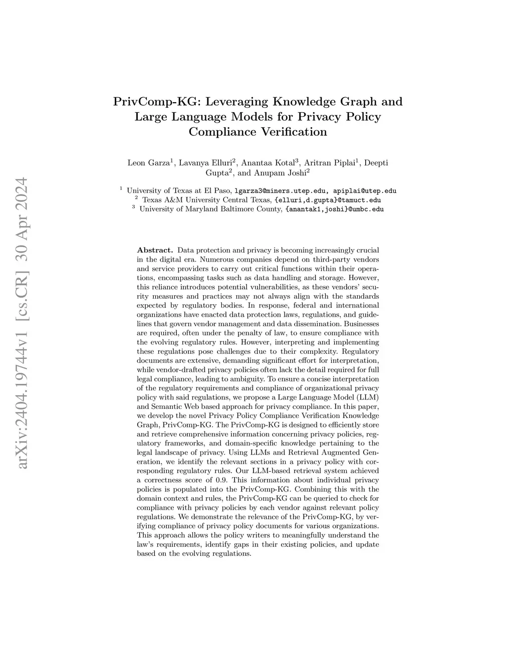 PrivComp-KG : Leveraging Knowledge Graph and Large Language Models for