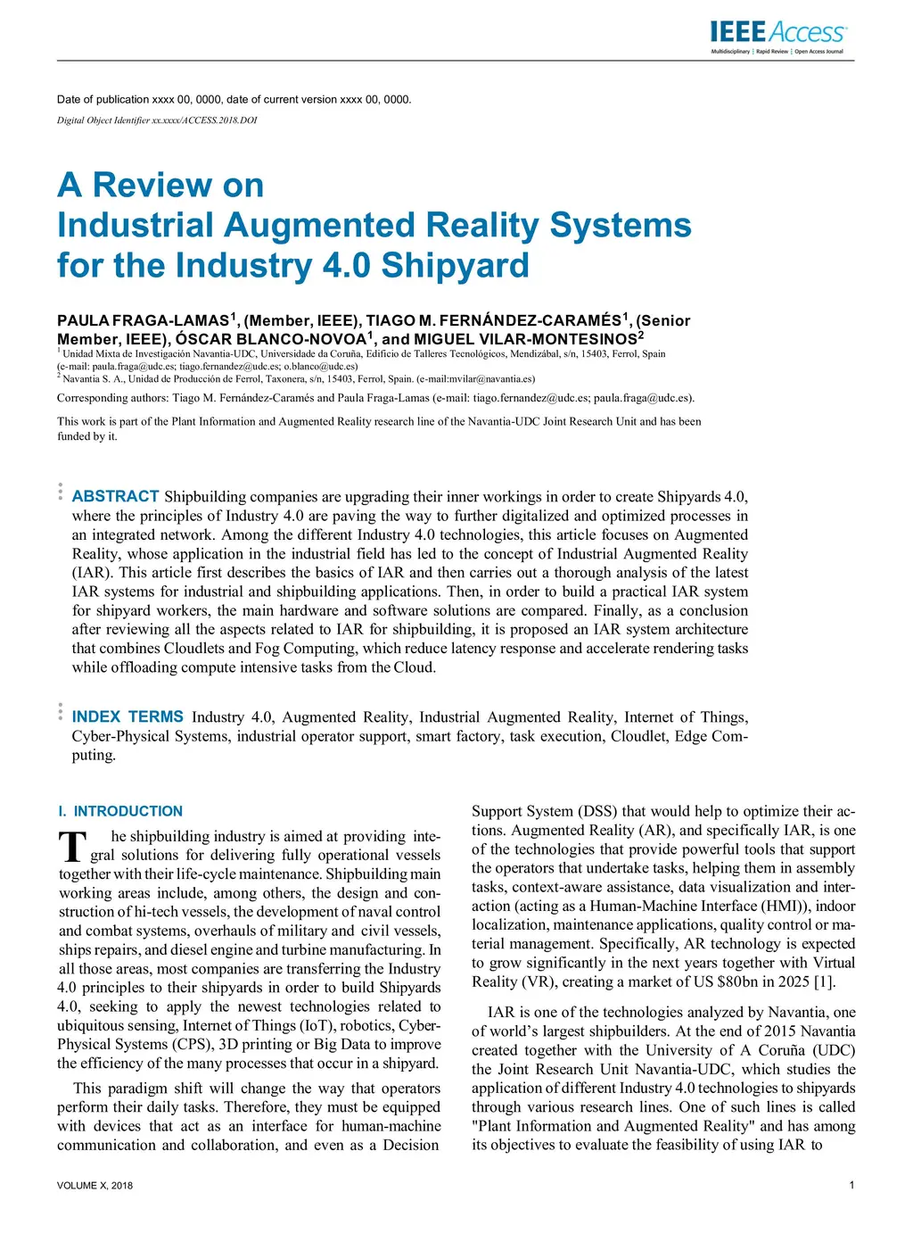Shipbuilding companies are upgrading their inner workings in order to create Shipyards 4.0, where the principles of Industry 4.0 are paving the way to further digitalized and optimized processes in an integrated network. Among the different Industry 4.0 technologies, this article focuses on Augmented Reality, whose application in the industrial field has led to the concept of Industrial Augmented Reality (IAR). This article first describes the basics of IAR and then carries out a thorough analysis of the latest IAR systems for industrial and shipbuilding applications. Then, in order to build a practical IAR system for shipyard workers, the main hardware and software solutions are compared. Finally, as a conclusion after reviewing all the aspects related to IAR for shipbuilding, it is proposed an IAR system architecture that combines Cloudlets and Fog Computing, which reduce latency response and accelerate rendering tasks while offloading compute intensive tasks from the Cloud.