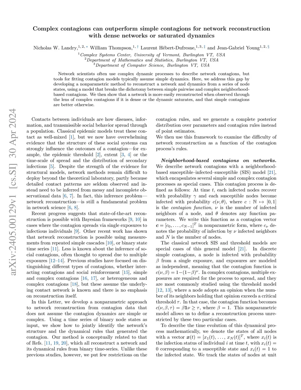 Network scientists often use complex dynamic processes to describe network contagions, but tools for fitting contagion models typically assume simple dynamics. Here, we address this gap by developing a nonparametric method to reconstruct a network and dynamics from a series of node states, using a model that breaks the dichotomy between simple pairwise and complex neighborhood-based contagions. We then show that a network is more easily reconstructed when observed through the lens of complex contagions if it is dense or the dynamic saturates, and that simple contagions are better otherwise.