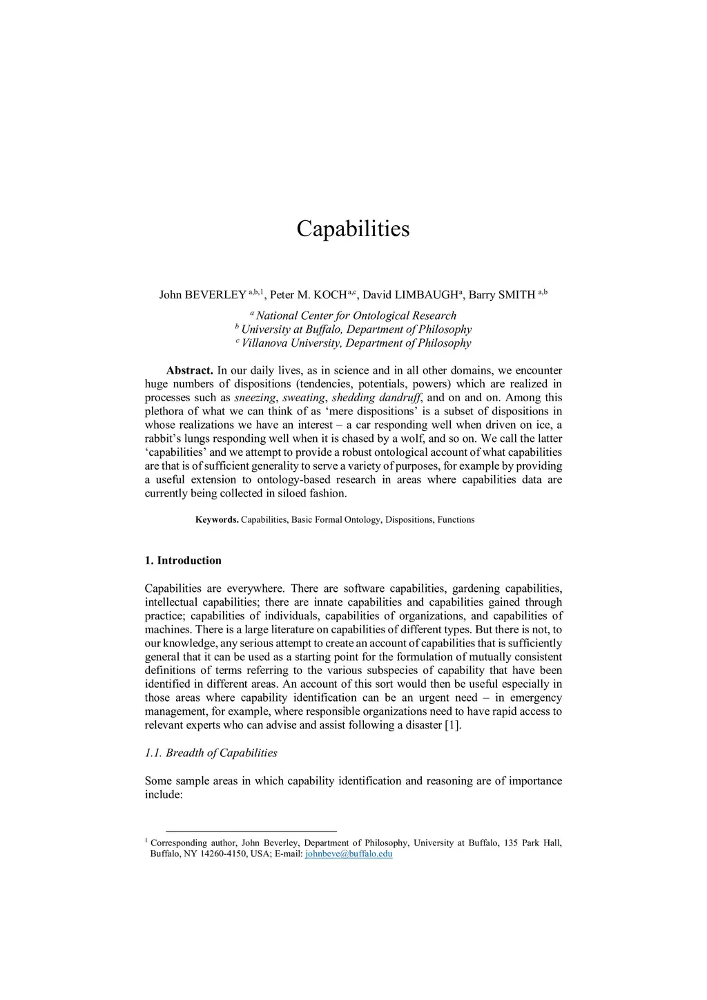 In our daily lives, as in science and in all other domains, we encounter huge numbers of dispositions (tendencies, potentials, powers) which are realized in processes such as sneezing, sweating, shedding dandruff, and on and on. Among this plethora of what we can think of as mere dispositions is a subset of dispositions in whose realizations we have an interest a car responding well when driven on ice, a rabbits lungs responding well when it is chased by a wolf, and so on. We call the latter capabilities and we attempt to provide a robust ontological account of what capabilities are that is of sufficient generality to serve a variety of purposes, for example by providing a useful extension to ontology-based research in areas where capabilities data are currently being collected in siloed fashion.