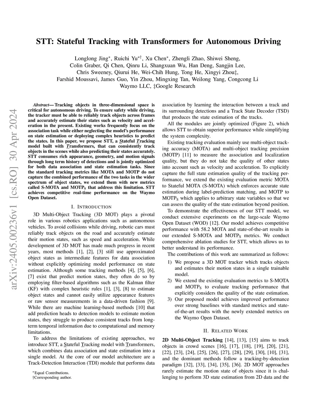 STT: Stateful Tracking with Transformers for Autonomous Driving