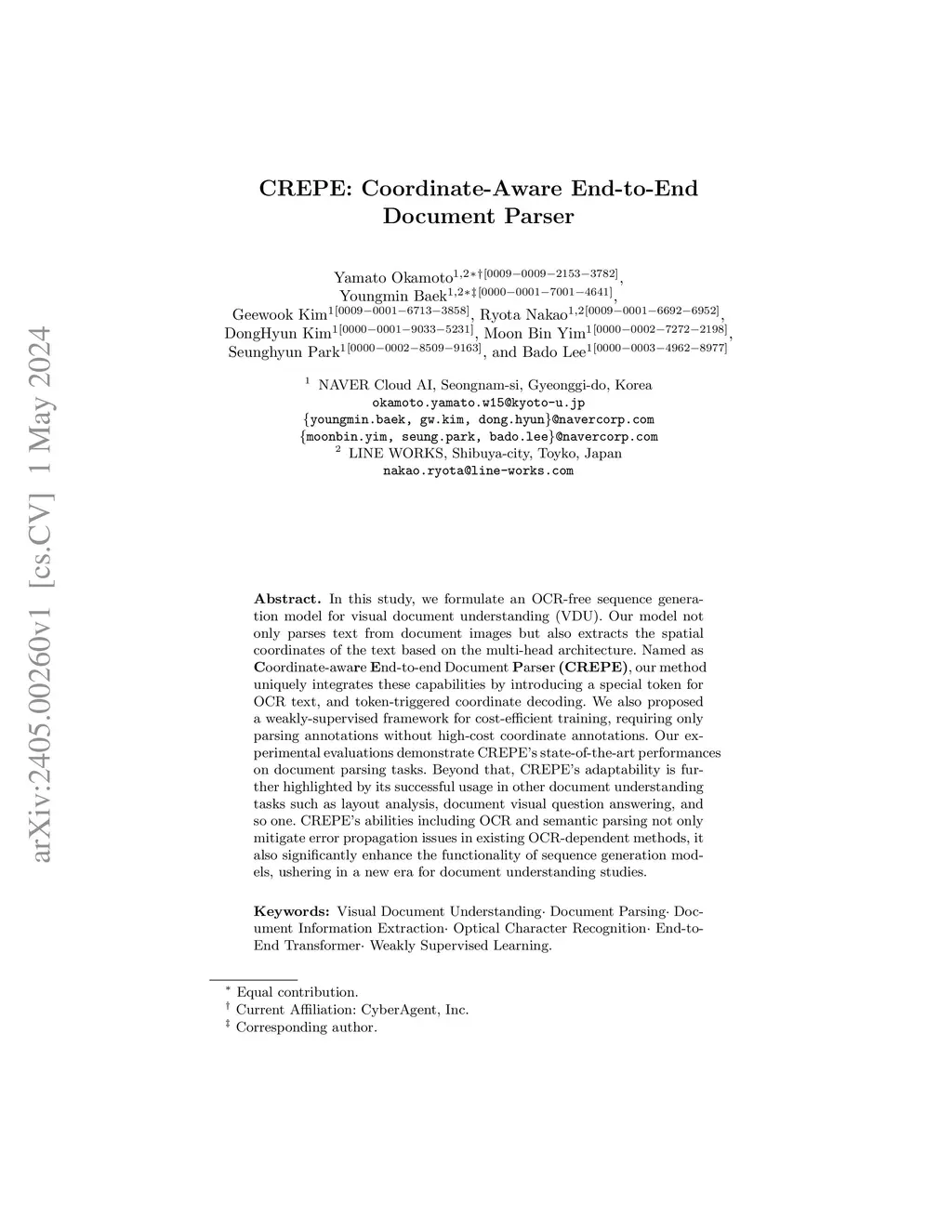 CREPE: Coordinate-Aware End-to-End Document Parser