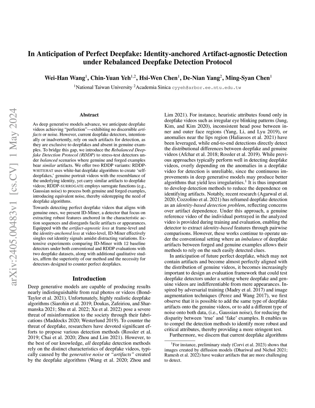As deep generative models advance, we anticipate deepfakes achieving "perfection"-generating no discernible artifacts or noise. However, current deepfake detectors, intentionally or inadvertently, rely on such artifacts for detection, as they are exclusive to deepfakes and absent in genuine examples. To bridge this gap, we introduce the Rebalanced Deepfake Detection Protocol (RDDP) to stress-test detectors under balanced scenarios where genuine and forged examples bear similar artifacts. We offer two RDDP variants: RDDP-WHITEHAT uses white-hat deepfake algorithms to create 'self-deepfakes,' genuine portrait videos with the resemblance of the underlying identity, yet carry similar artifacts to deepfake videos; RDDP-SURROGATE employs surrogate functions (e.g., Gaussian noise) to process both genuine and forged examples, introducing equivalent noise, thereby sidestepping the need of deepfake algorithms. Towards detecting perfect deepfake videos that aligns with genuine ones, we present ID-Miner, a detector that identifies the puppeteer behind the disguise by focusing on motion over artifacts or appearances. As an identity-based detector, it authenticates videos by comparing them with reference footage. Equipped with the artifact-agnostic loss at frame-level and the identity-anchored loss at video-level, ID-Miner effectively singles out identity signals amidst distracting variations. Extensive experiments comparing ID-Miner with 12 baseline detectors under both conventional and RDDP evaluations with two deepfake datasets, along with additional qualitative studies, affirm the superiority of our method and the necessity for detectors designed to counter perfect deepfakes.