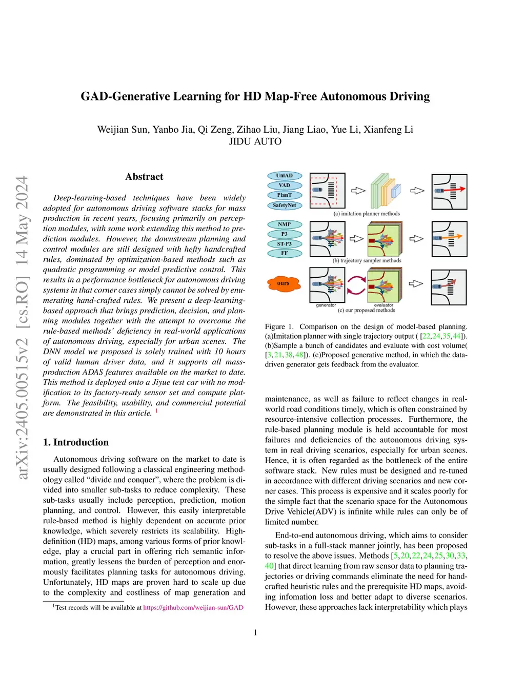 GAD-Generative Learning for HD Map-Free Autonomous Driving