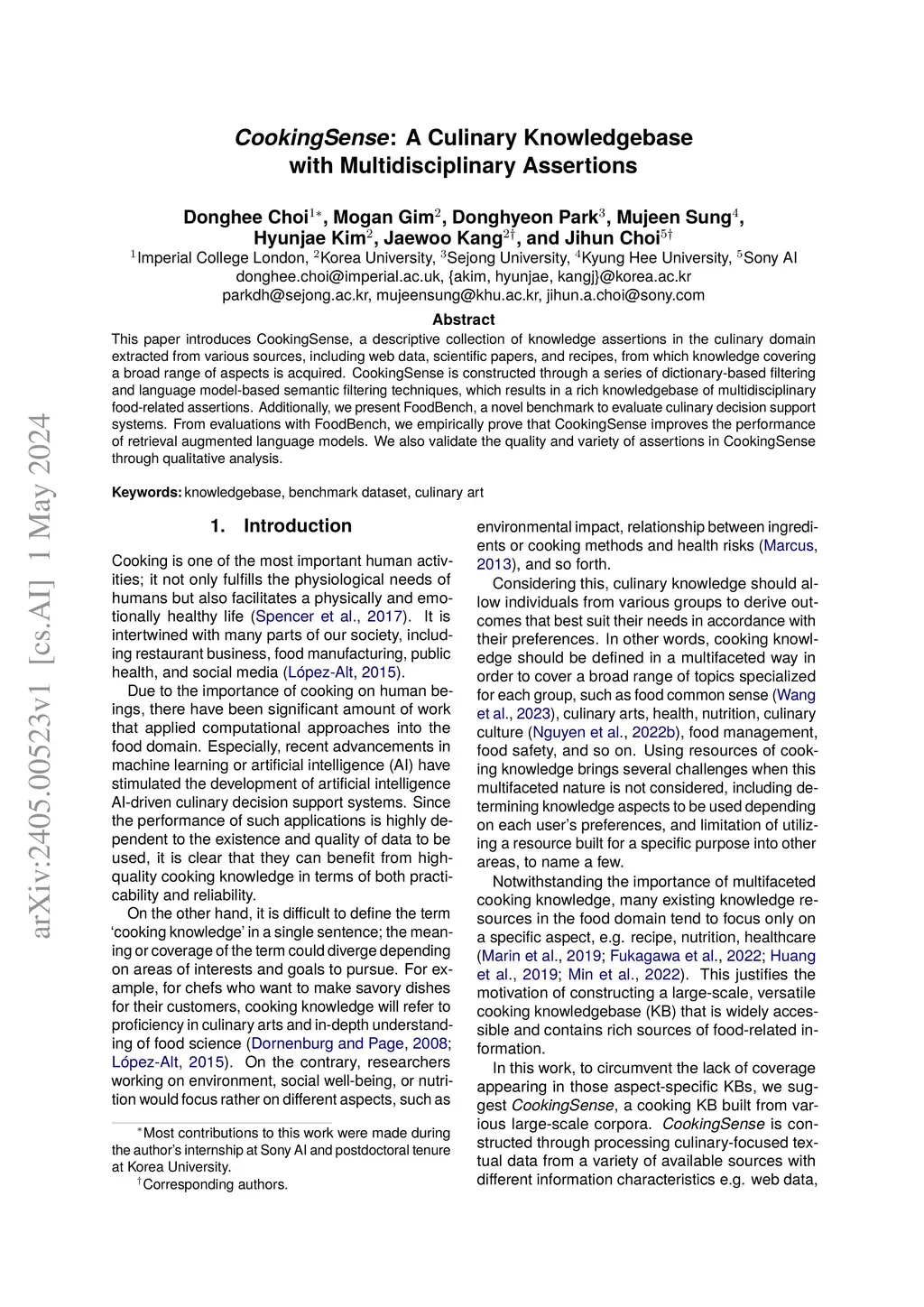 CookingSense: A Culinary Knowledgebase with Multidisciplinary Assertions