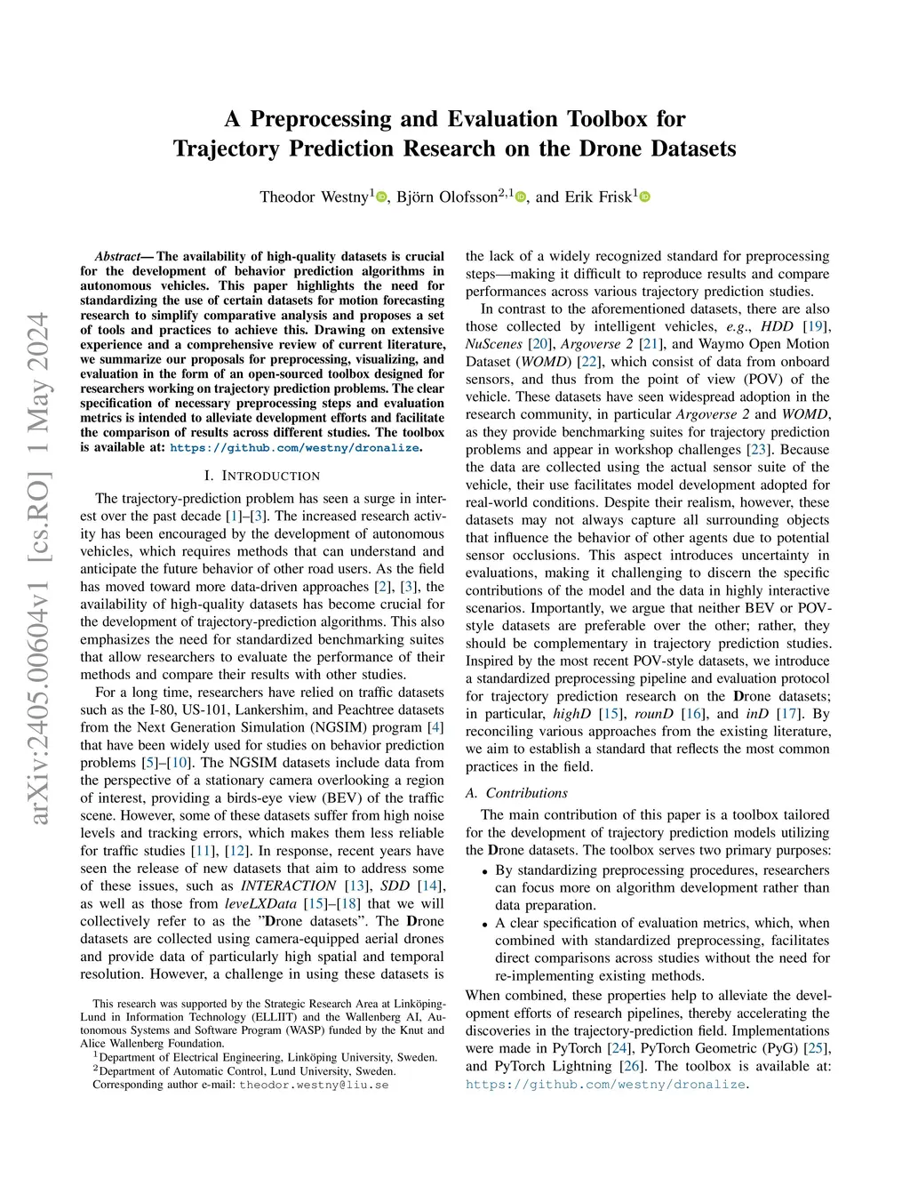 The availability of high-quality datasets is crucial for the development of behavior prediction algorithms in autonomous vehicles. This paper highlights the need to standardize the use of certain datasets for motion forecasting research to simplify comparative analysis and proposes a set of tools and practices to achieve this. Drawing on extensive experience and a comprehensive review of current literature, we summarize our proposals for preprocessing, visualization, and evaluation in the form of an open-sourced toolbox designed for researchers working on trajectory prediction problems. The clear specification of necessary preprocessing steps and evaluation metrics is intended to alleviate development efforts and facilitate the comparison of results across different studies. The toolbox is available at:this https URL.