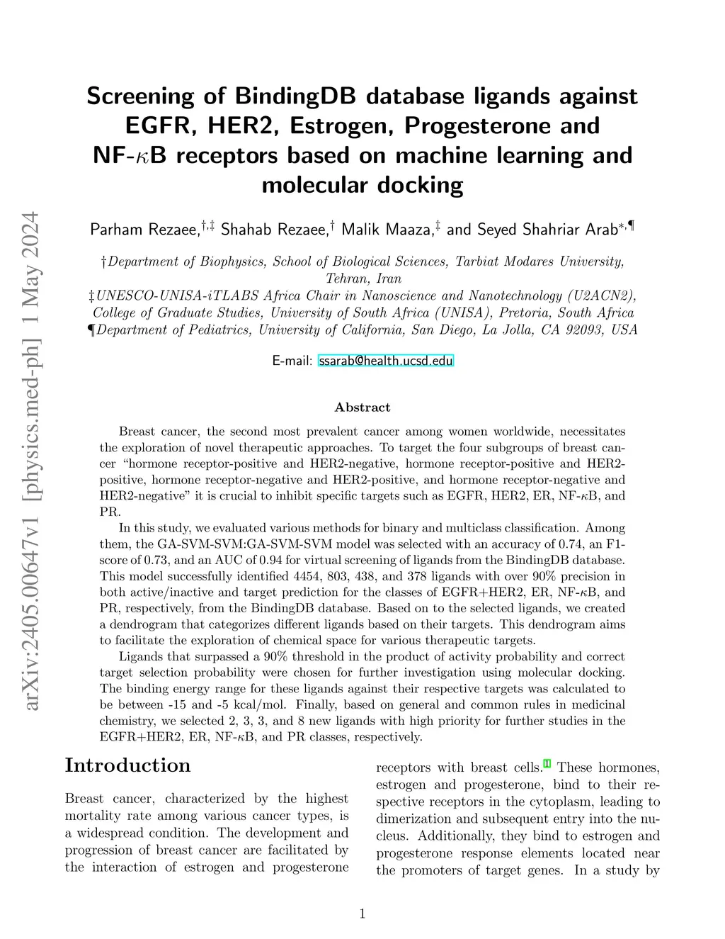 Screening of BindingDB database ligands against EGFR, HER2, Estrogen,