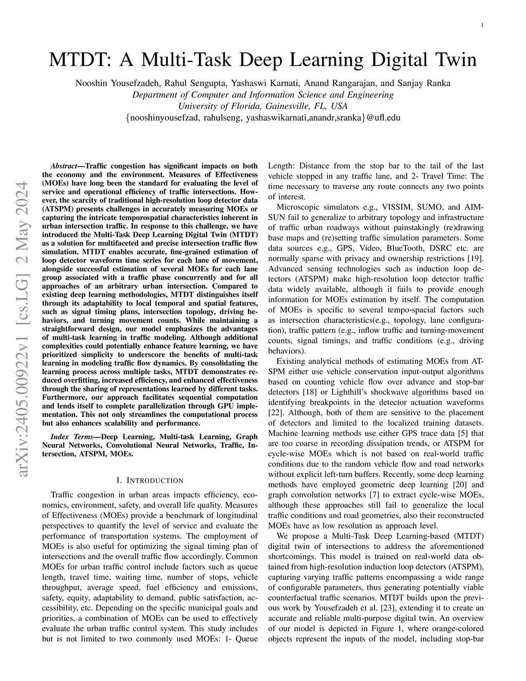 Traffic congestion has significant impacts on both the economy and the environment. Measures of Effectiveness (MOEs) have long been the standard for evaluating traffic intersections' level of service and operational efficiency. However, the scarcity of traditional high-resolution loop detector data (ATSPM) presents challenges in accurately measuring MOEs or capturing the intricate spatiotemporal characteristics inherent in urban intersection traffic. To address this challenge, we present a comprehensive intersection traffic flow simulation that utilizes a multi-task learning paradigm. This approach combines graph convolutions for primary estimating lane-wise exit and inflow with time series convolutions for secondary assessing multi-directional queue lengths and travel time distribution through any arbitrary urban traffic intersection. Compared to existing deep learning methodologies, the proposed Multi-Task Deep Learning Digital Twin (MTDT) distinguishes itself through its adaptability to local temporal and spatial features, such as signal timing plans, intersection topology, driving behaviors, and turning movement counts. We also show the benefit of multi-task learning in the effectiveness of individual traffic simulation tasks. Furthermore, our approach facilitates sequential computation and provides complete parallelization through GPU implementation. This not only streamlines the computational process but also enhances scalability and performance.