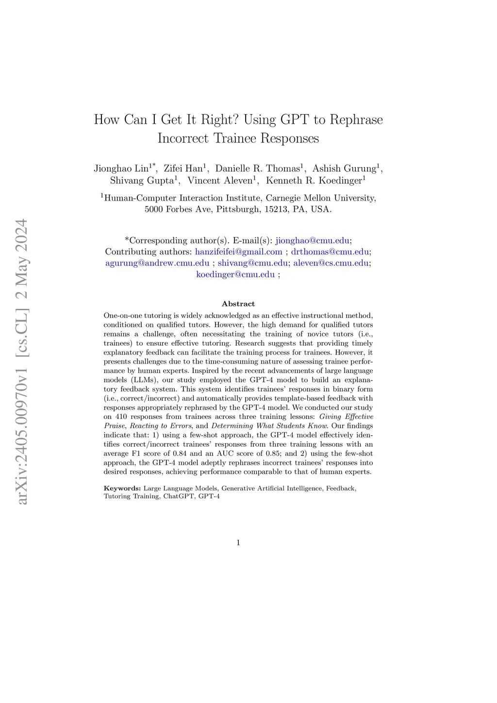 How Can I Get It Right? Using GPT to Rephrase Incorrect Trainee