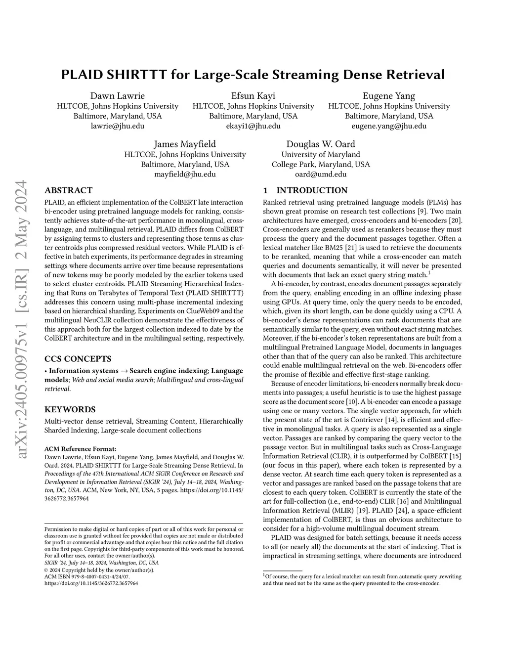 PLAID SHIRTTT for Large-Scale Streaming Dense Retrieval