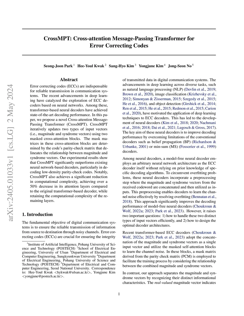 CrossMPT: Cross-attention Message-Passing Transformer for Error