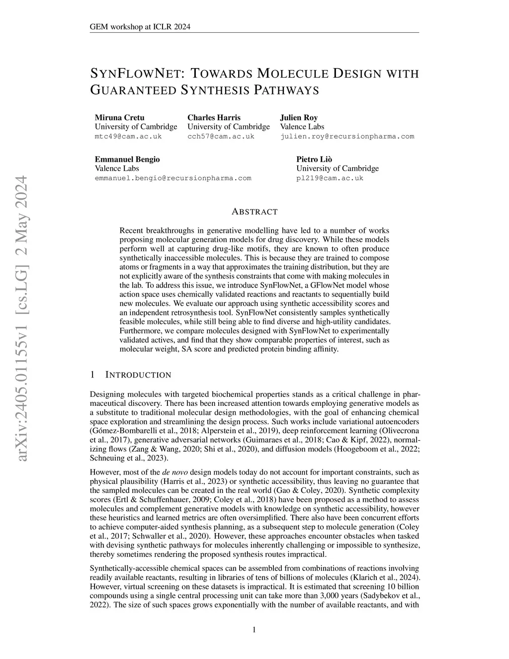 SynFlowNet: Design of Diverse and Novel Molecules with Synthesis Constraints