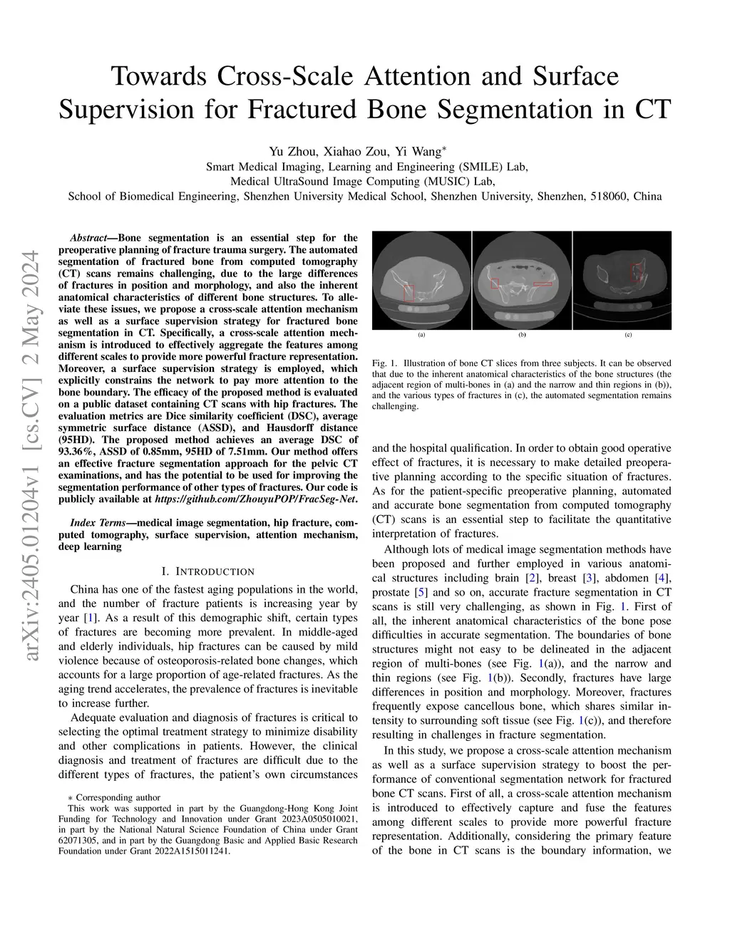 Towards Cross-Scale Attention and Surface Supervision for Fractured Bone