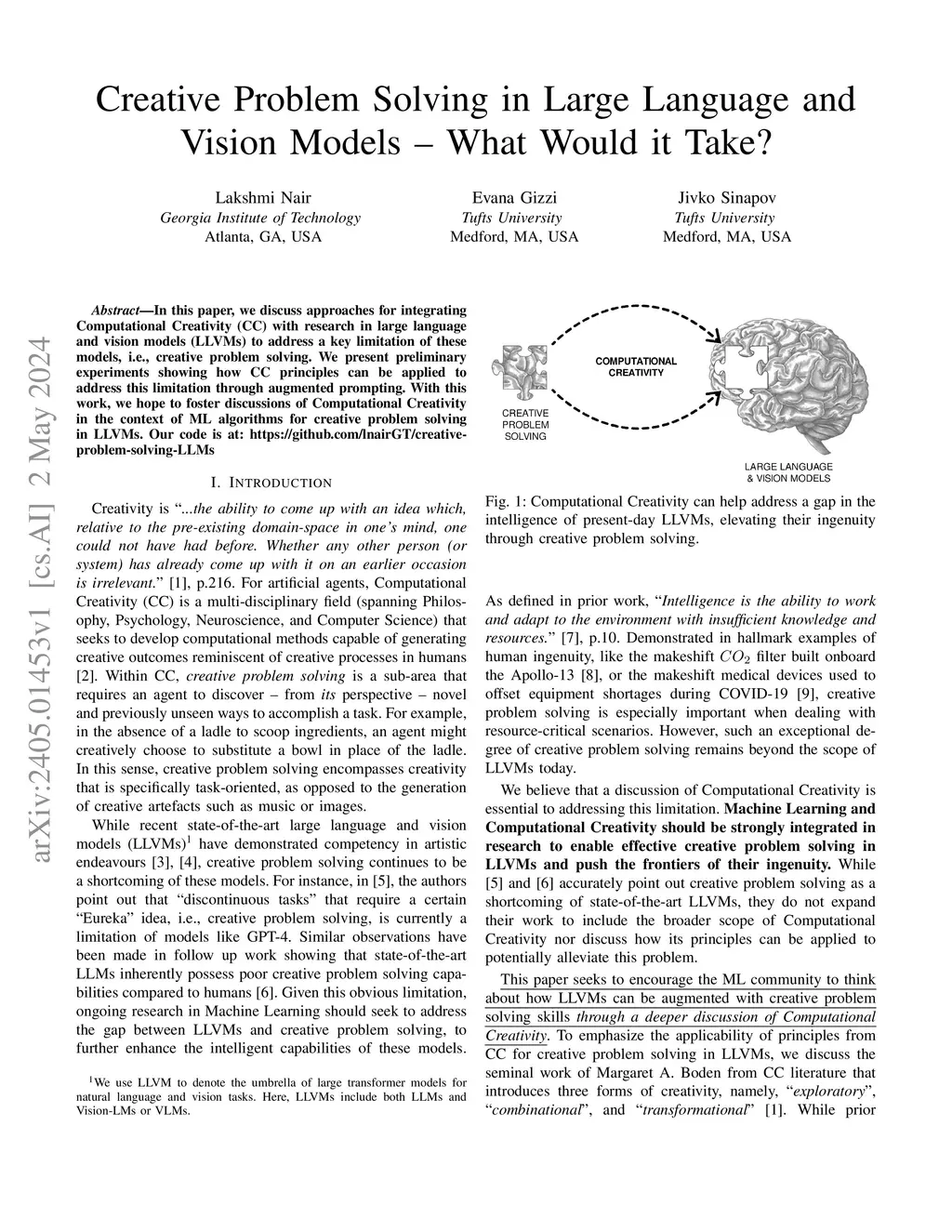 Creative Problem Solving in Large Language and Vision Models -- What