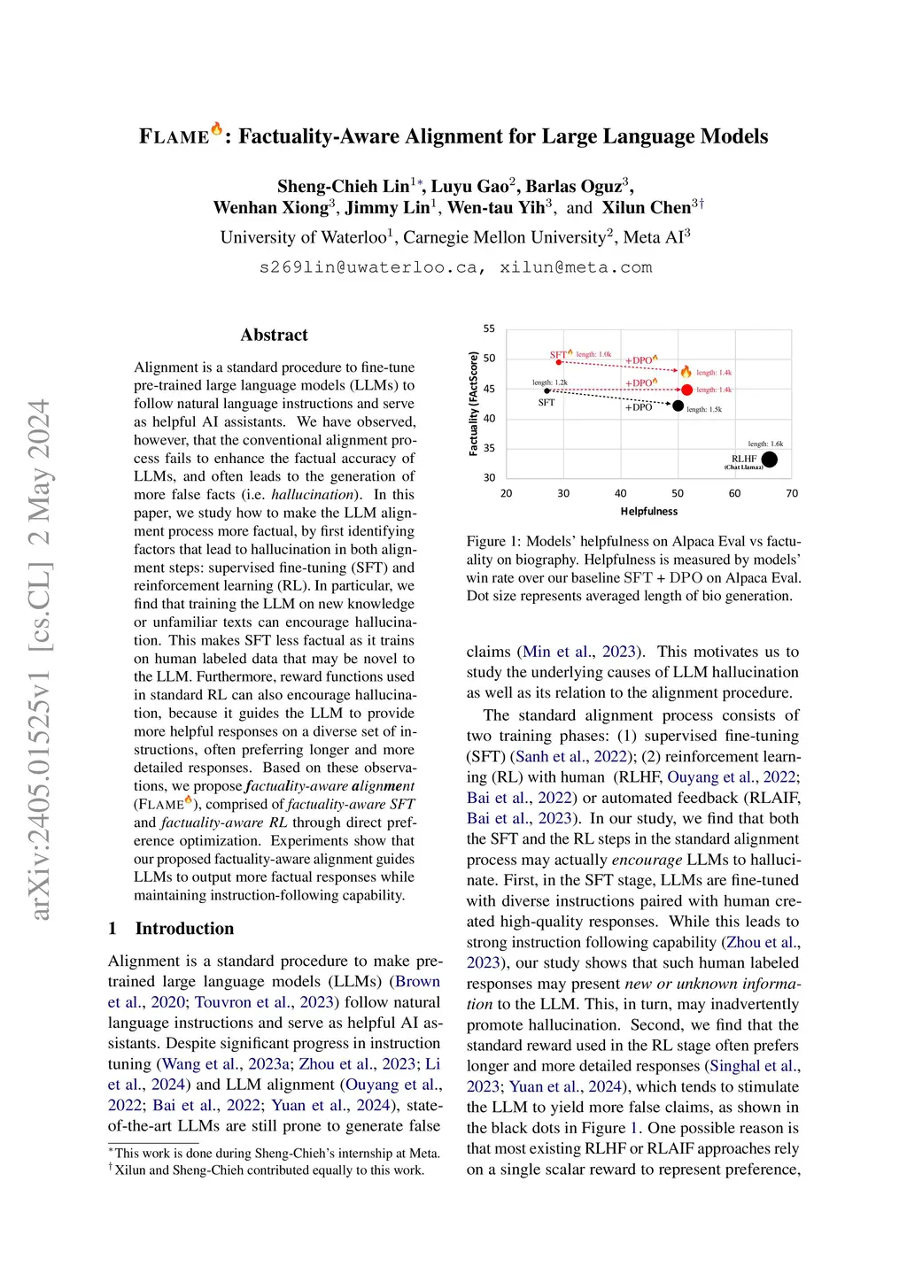FLAME: Factuality-Aware Alignment for Large Language Models