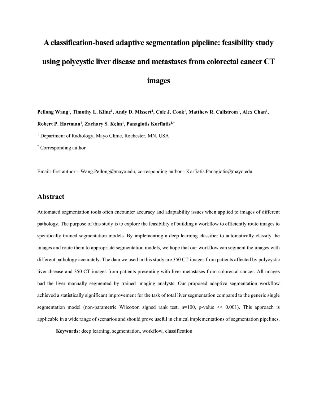 A Classification-Based Adaptive Segmentation Pipeline: Feasibility Study