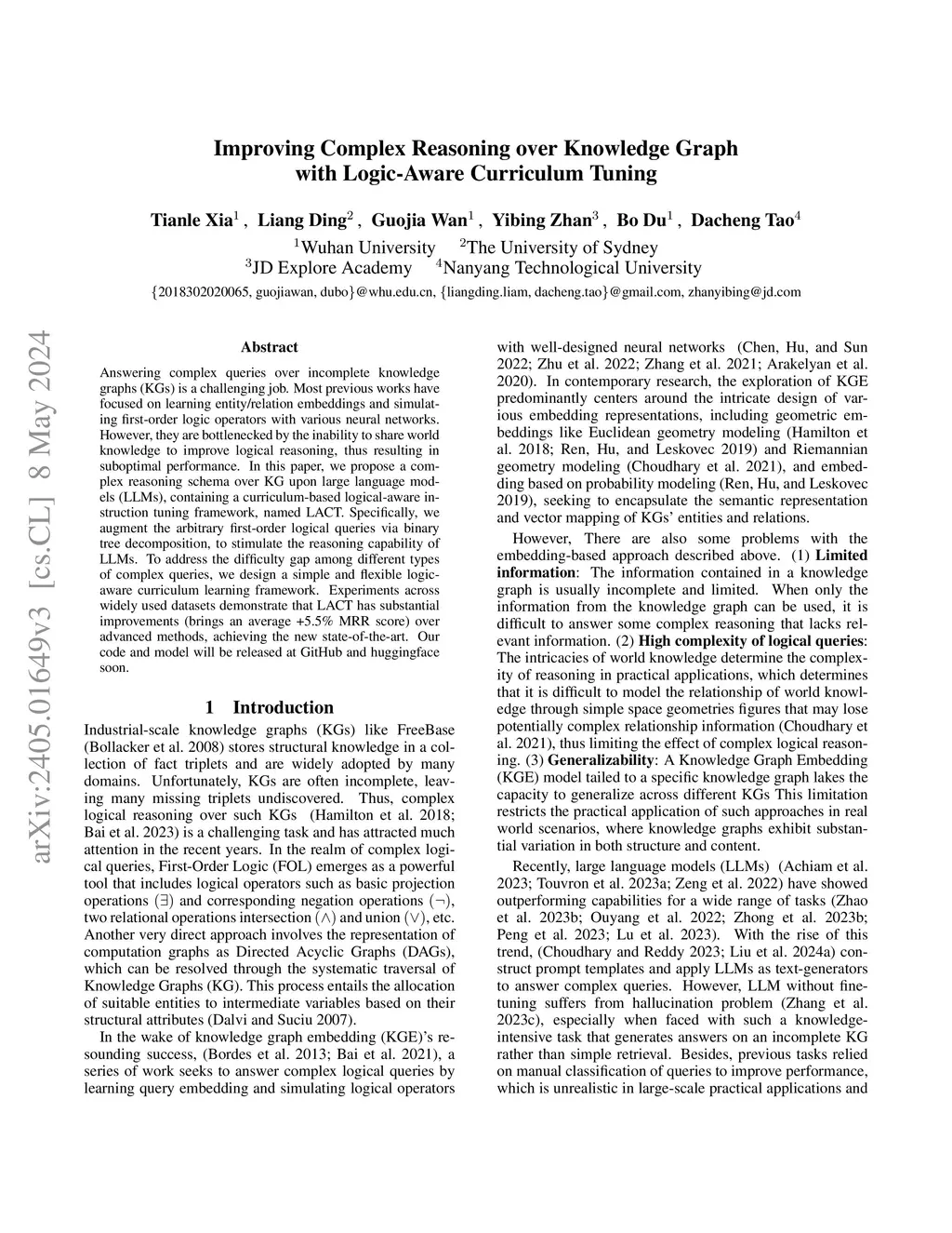 Improving Complex Reasoning over Knowledge Graph with Logic-Aware Curriculum Tuning