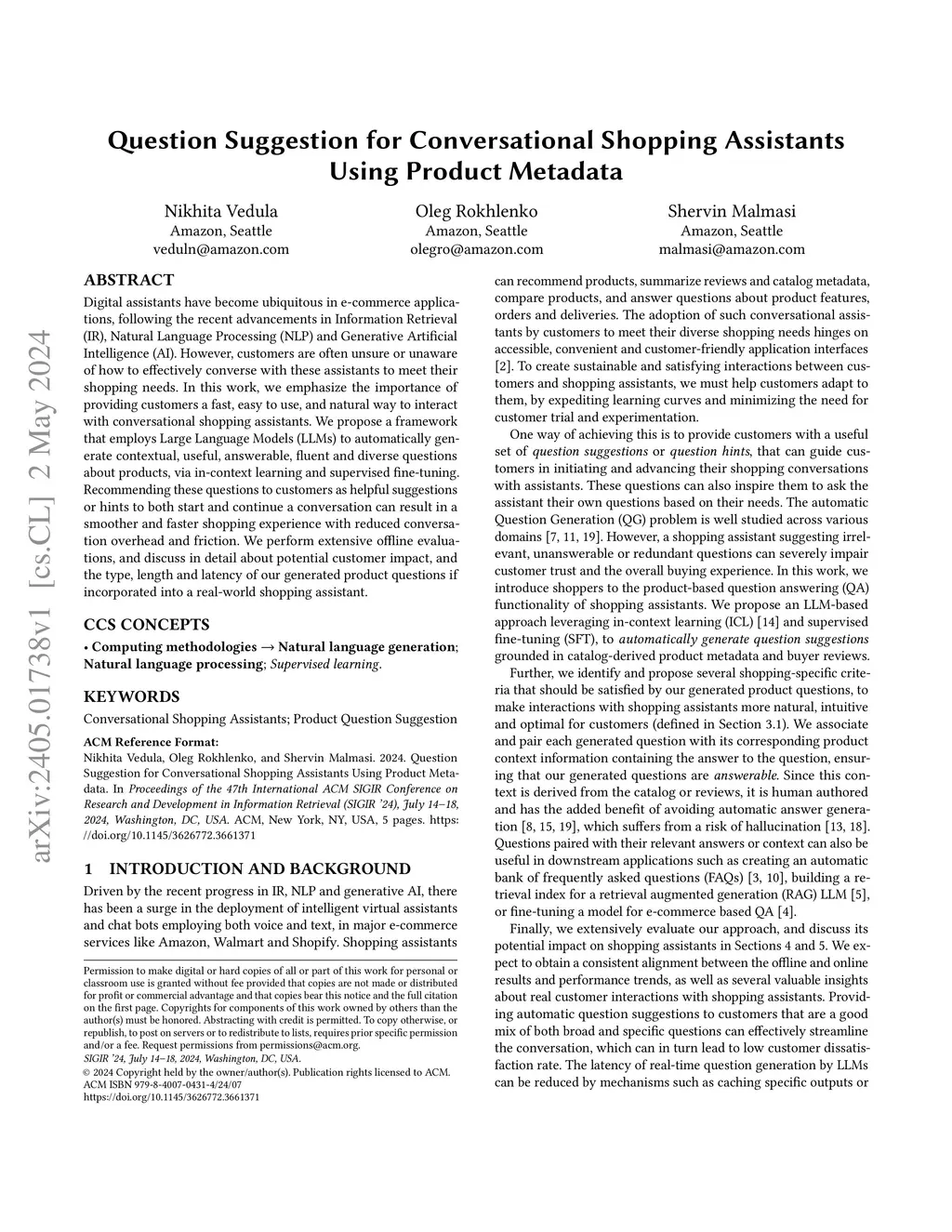 Question Suggestion for Conversational Shopping Assistants Using Product