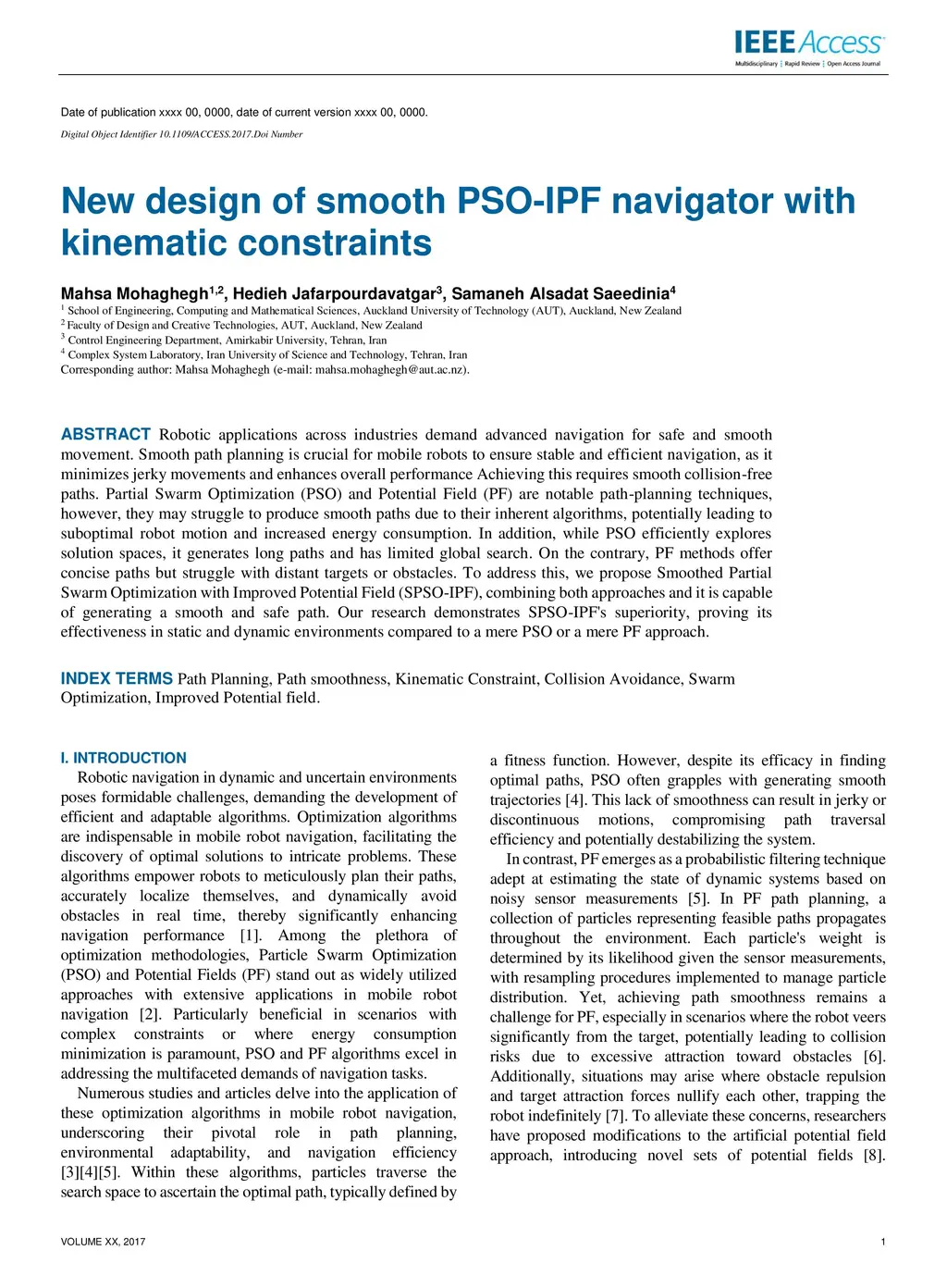New design of smooth PSO-IPF navigator with kinematic constraints