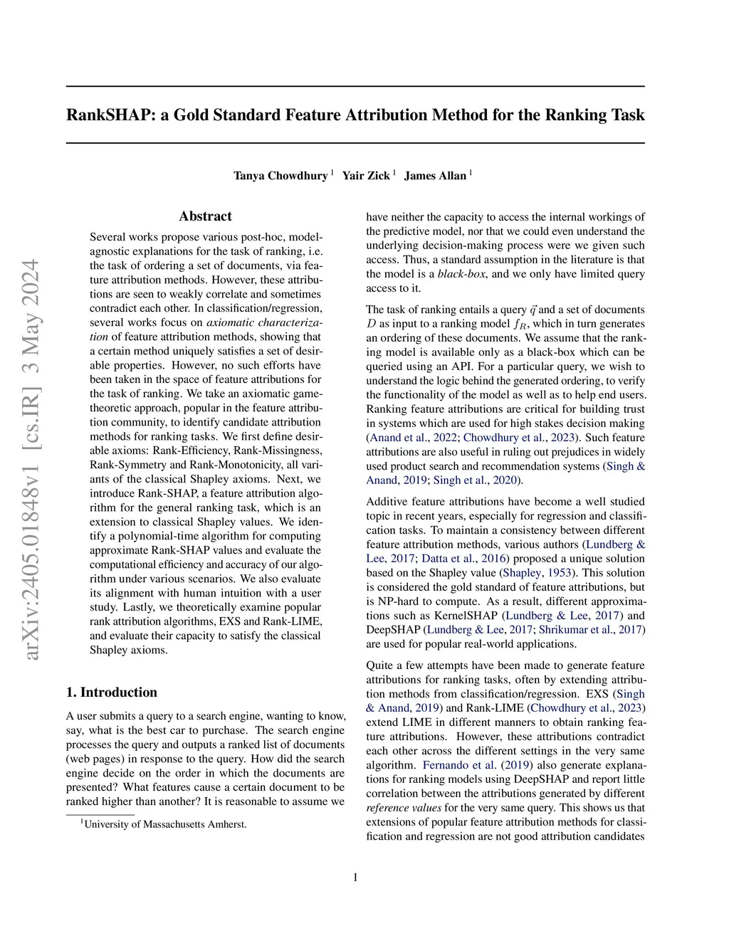 Numerous works propose post-hoc, model-agnostic explanations for learning to rank, focusing on ordering entities by their relevance to a query through feature attribution methods. However, these attributions often weakly correlate or contradict each other, confusing end users. We adopt an axiomatic game-theoretic approach, popular in the feature attribution community, to identify a set of fundamental axioms that every ranking-based feature attribution method should satisfy. We then introduce Rank-SHAP, extending classical Shapley values to ranking. We evaluate the RankSHAP framework through extensive experiments on two datasets, multiple ranking methods and evaluation metrics. Additionally, a user study confirms RankSHAP's alignment with human intuition. We also perform an axiomatic analysis of existing rank attribution algorithms to determine their compliance with our proposed axioms. Ultimately, our aim is to equip practitioners with a set of axiomatically backed feature attribution methods for studying IR ranking models, that ensure generality as well as consistency.