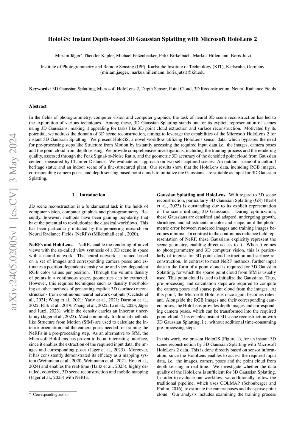 HoloGS: Instant Depth-based 3D Gaussian Splatting with Microsoft