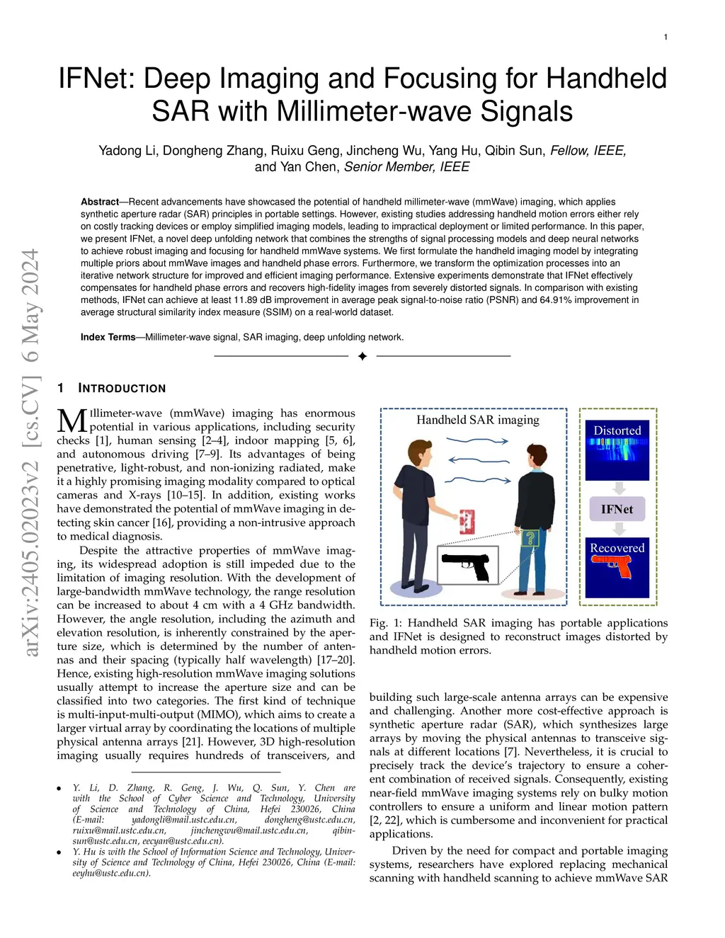 IFNet: Deep Imaging and Focusing for Handheld SAR with Millimeter-wave Signals
