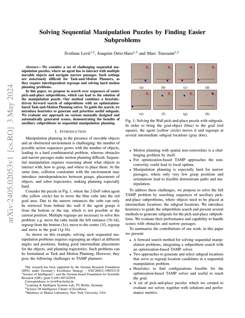 Solving Sequential Manipulation Puzzles by Finding Easier Subproblems